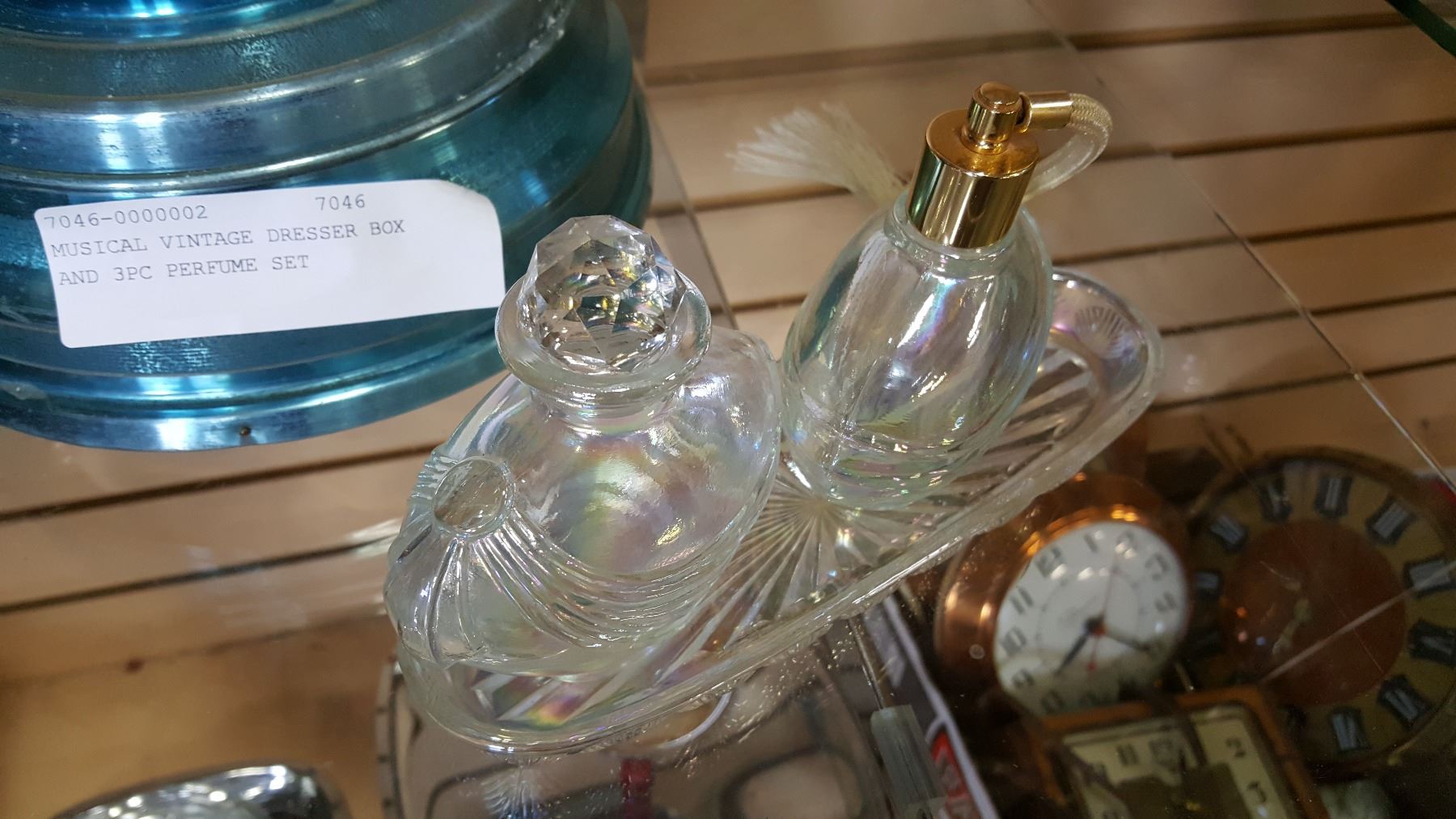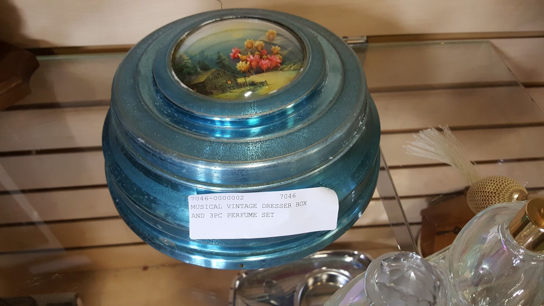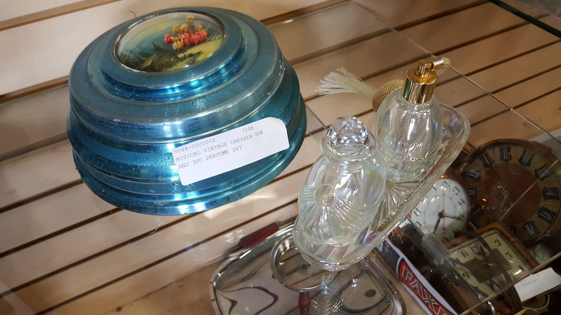 MUSICAL VINTAGE DRESSER BOX AND 3PC PERFUME SET