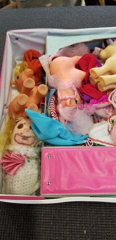 MY LITTLE PONY TOYS AND ACCESSORIES IN BARBIE CASE AND VINTAGE DOLL CASE