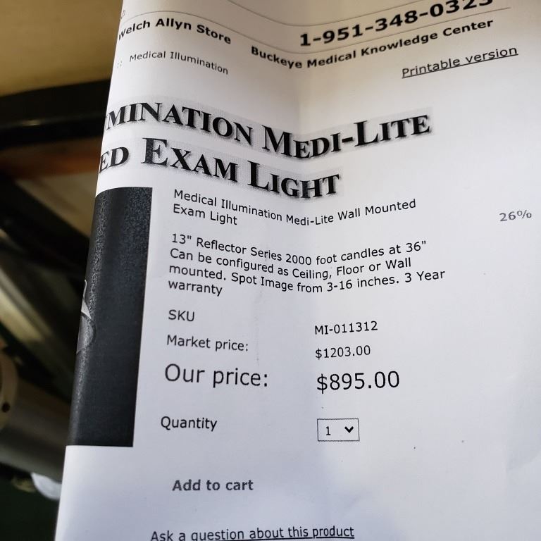 Medical illmination medi lite wall mounted exam light compare @ $895