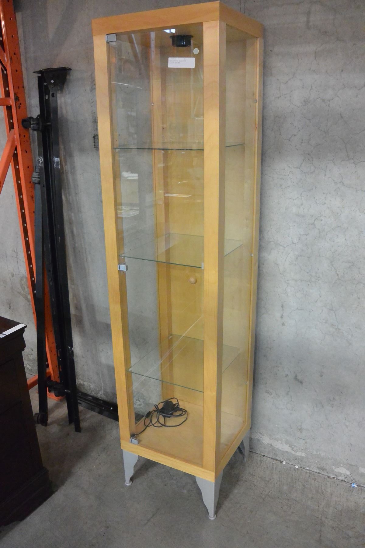 NARROW MAPLE GLASS DOOR DISPLAY CABINET
