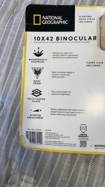 NATIONAL GEOGRAPHIC 10 X 42 BINOCULARS WATERPROOF PERFORMANCE - TESTED WORKING, RETAIL $79