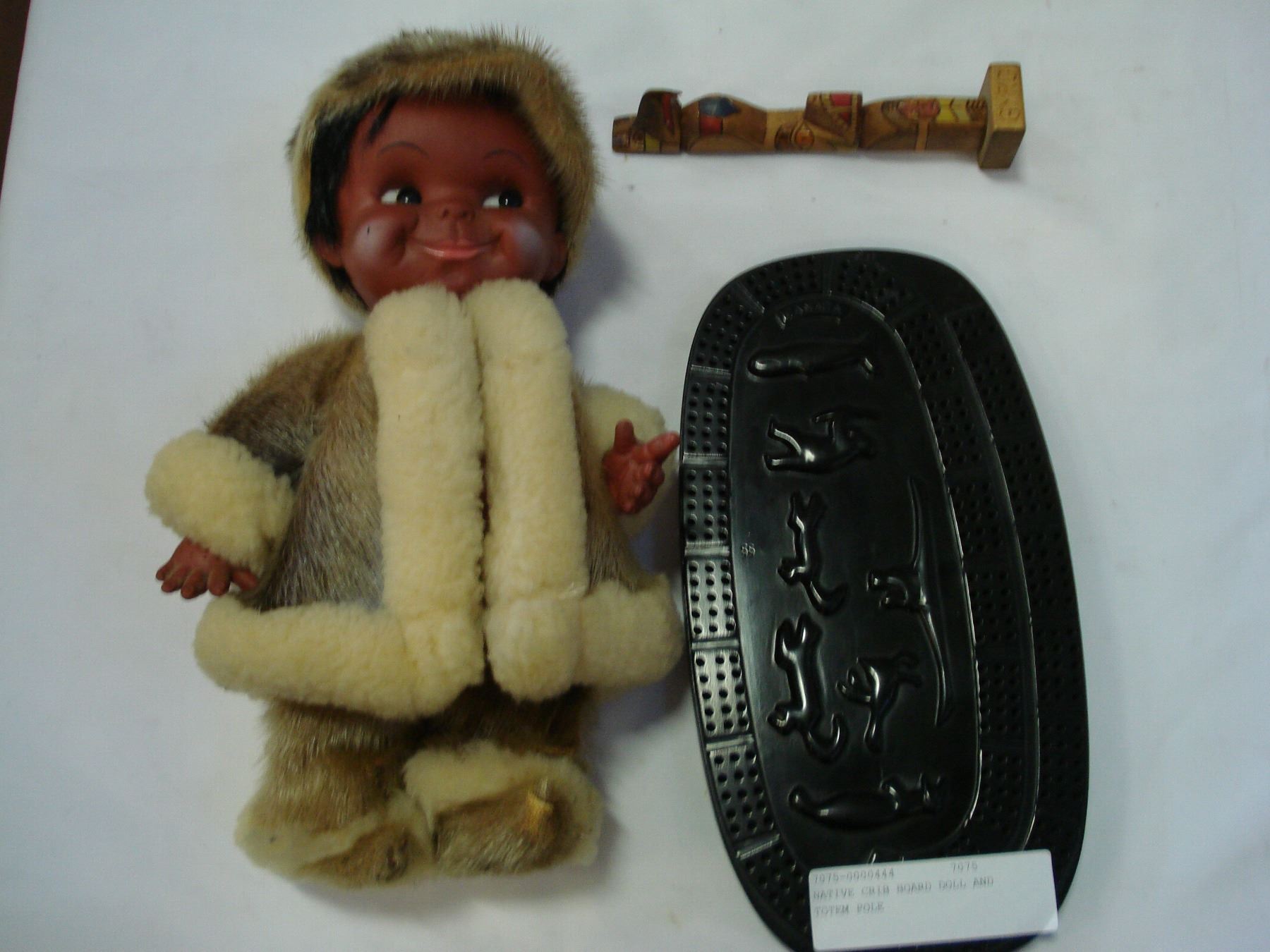 NATIVE CRIB BOARD DOLL AND TOTEM POLE