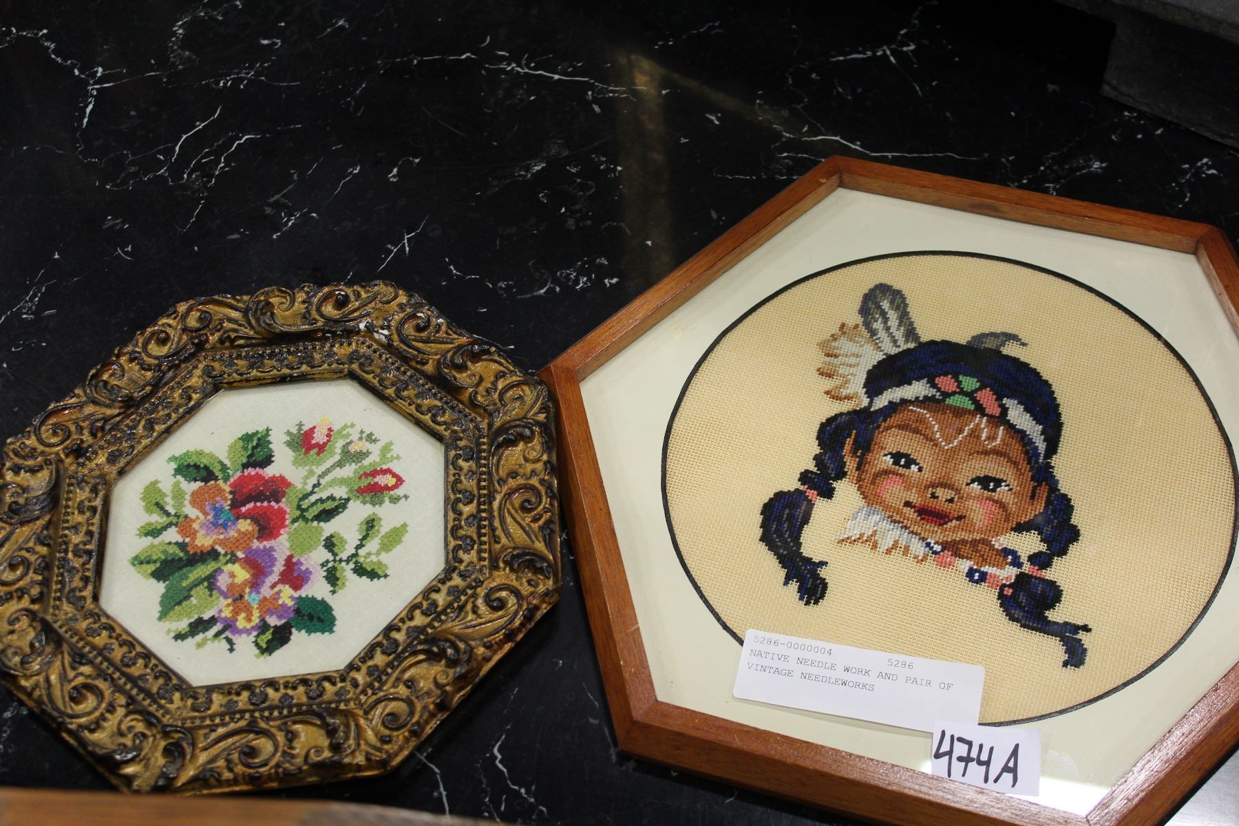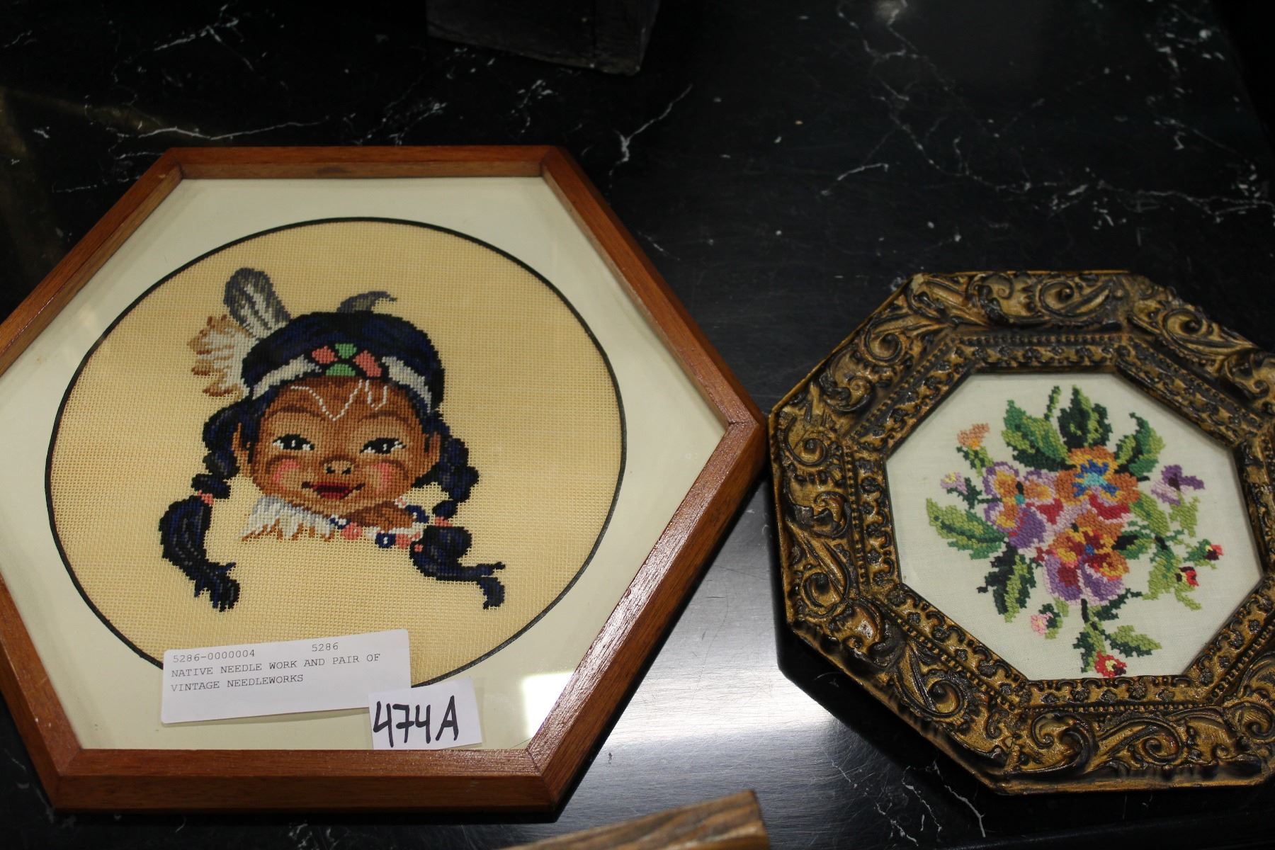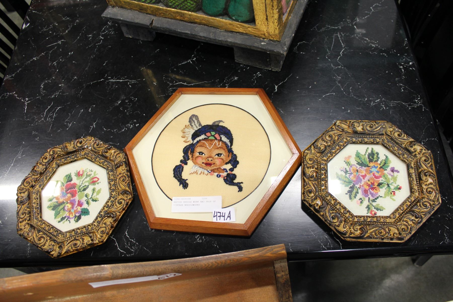 NATIVE NEEDLE WORK AND PAIR OF VINTAGE NEEDLEWORKS