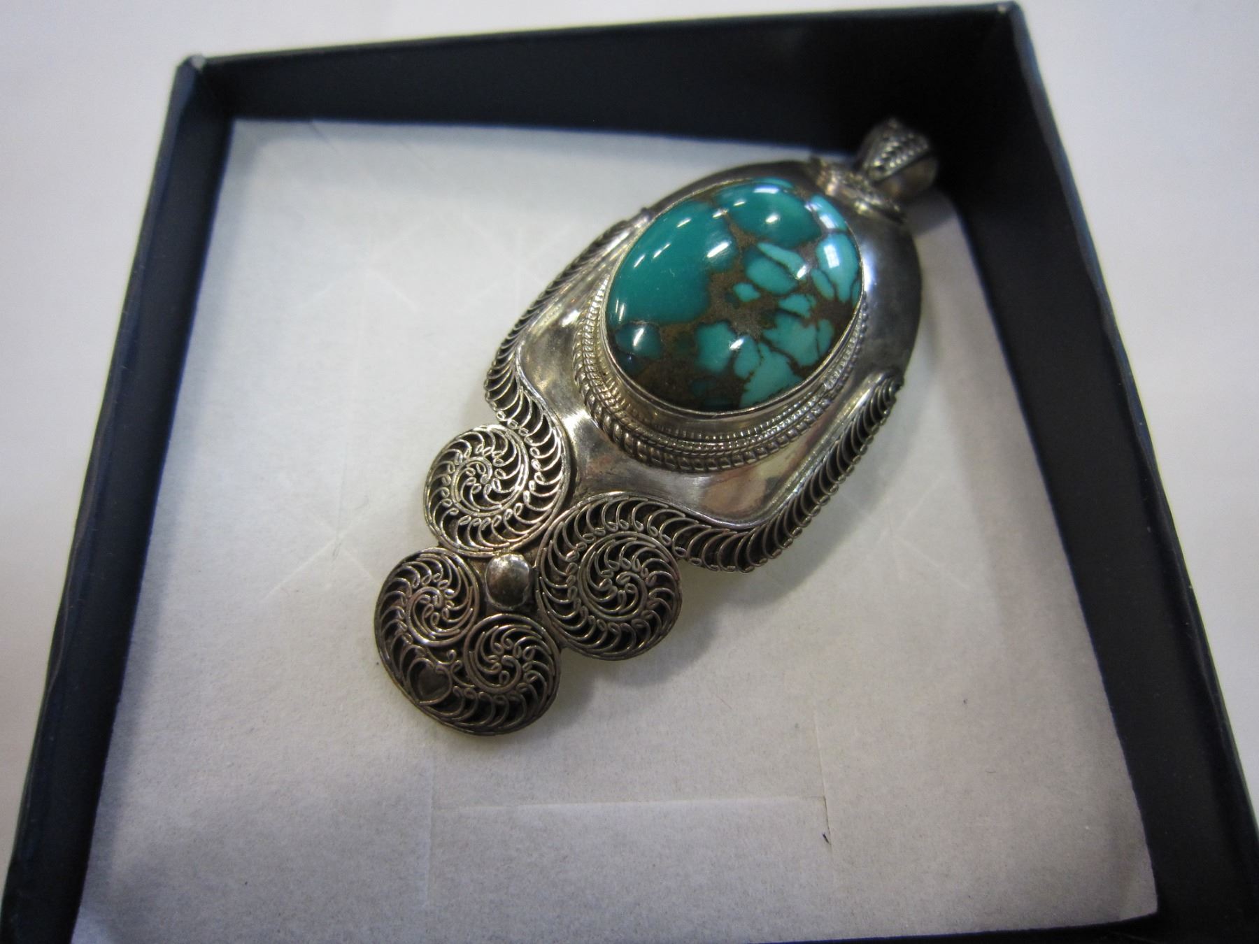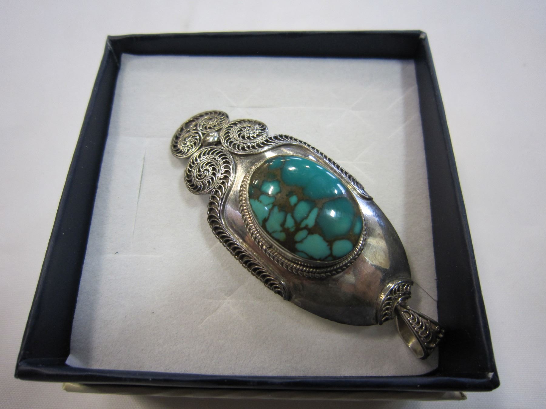 NATIVE TURQUOISE PENDANT MARKED 925 SILVER