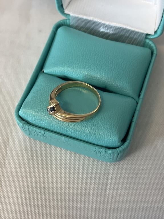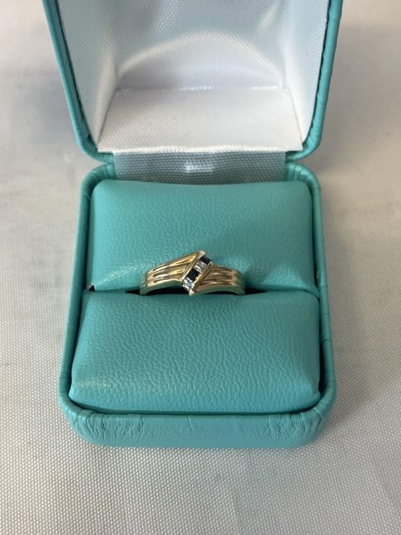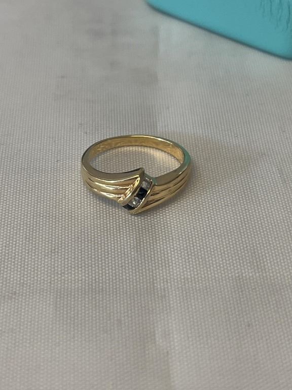 NATURAL BLUE SAPPHIRE (0.10CT) WITH CZ (0.16CT) RING, SIZE 6, $300.00. SAPPHIRE IS THE BIRTHSTONE FOR SEPTEMBER.