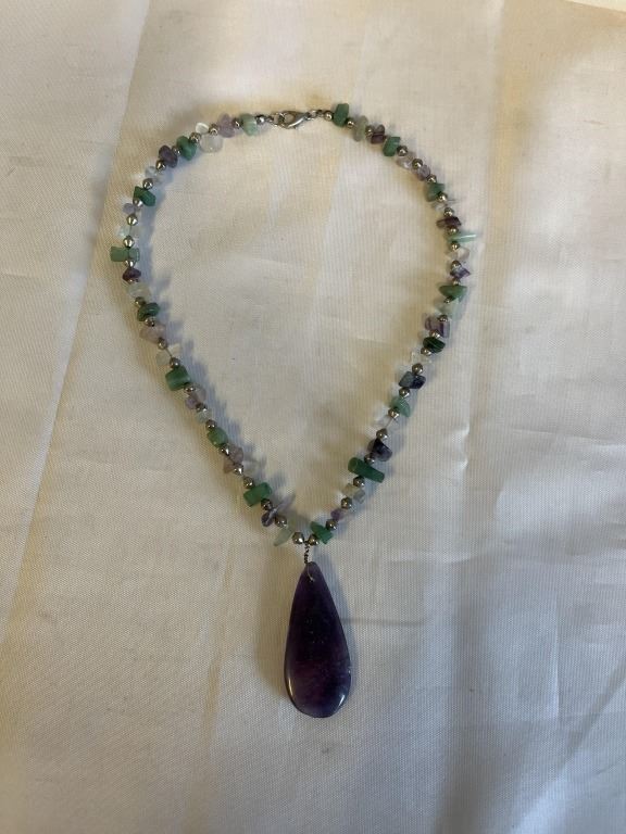 NATURAL STONES W/ SILVER BEADS NECKLACE
