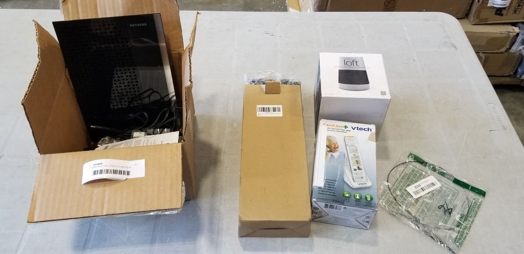 NETGEAR ROUTER, VTECH CORDLESS PHONE, SOLAR LED LIGHT AND LOFT BATTERY BASE FOR GOOGLE HOME