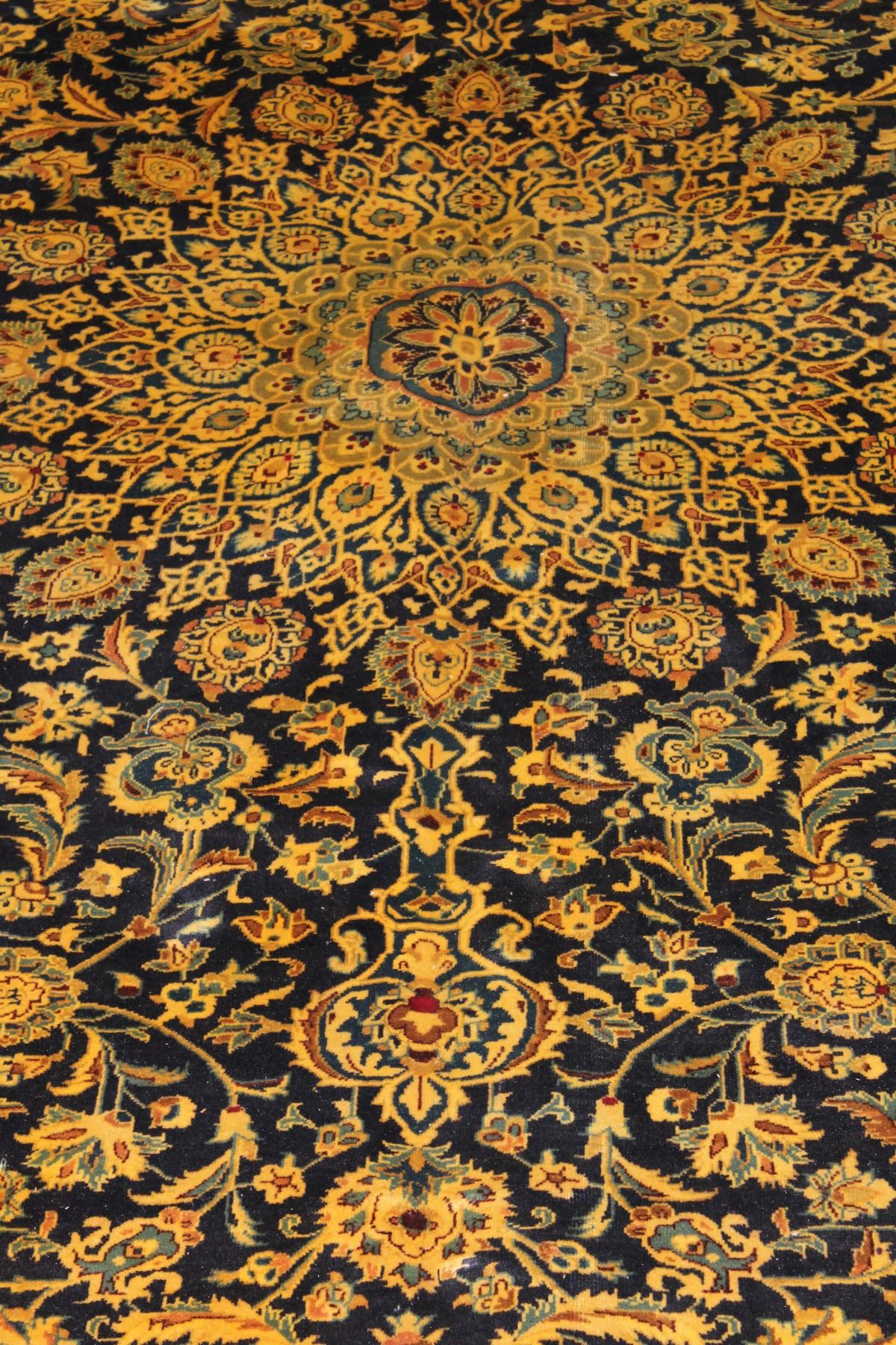 NEW 100% WOOL, HAND KNOTTED YELLOW, NAVY BLUE AREA CARPET, SIZE 148.5 INCH BY 118 INCH