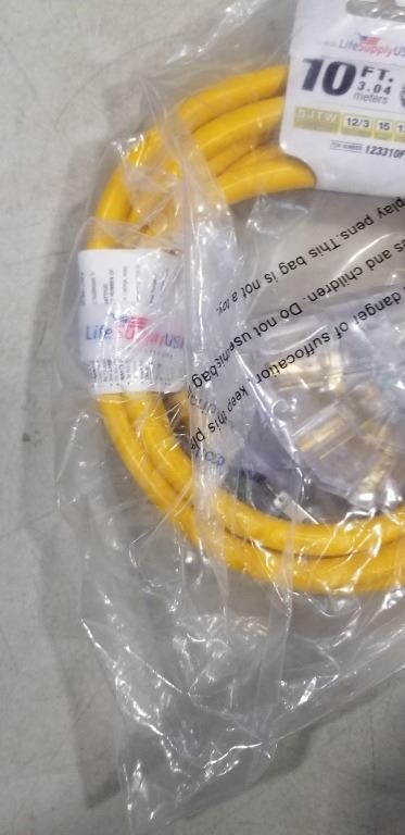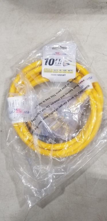 NEW 10FT 3 OUTLET HEAVY DUTY INDOOR OUTDOOR 3 WIRE EXTENSION CORD, YELLOW 12AWG