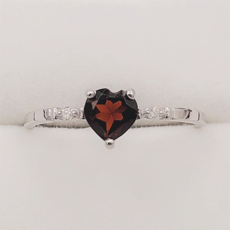 NEW 10KT WHITE GOLD GENUINE GARNET AND DIAMOND HEART RING W/ APPRAISAL $1260