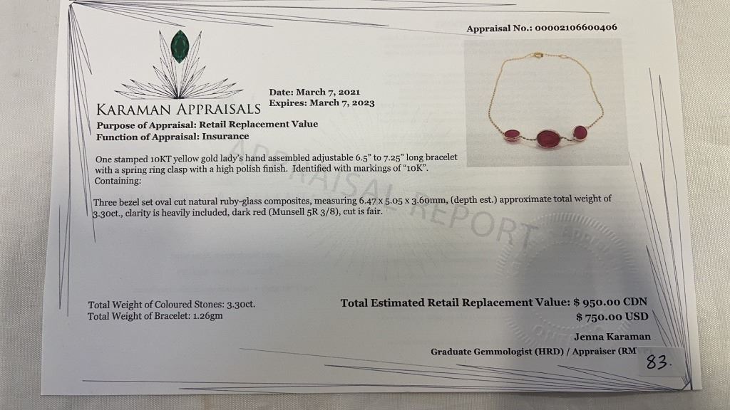 NEW 10KT YELLOW GOLD GENUINE RUBY BRACELET W/ APPRAISAL W/ APPRAISAL $950