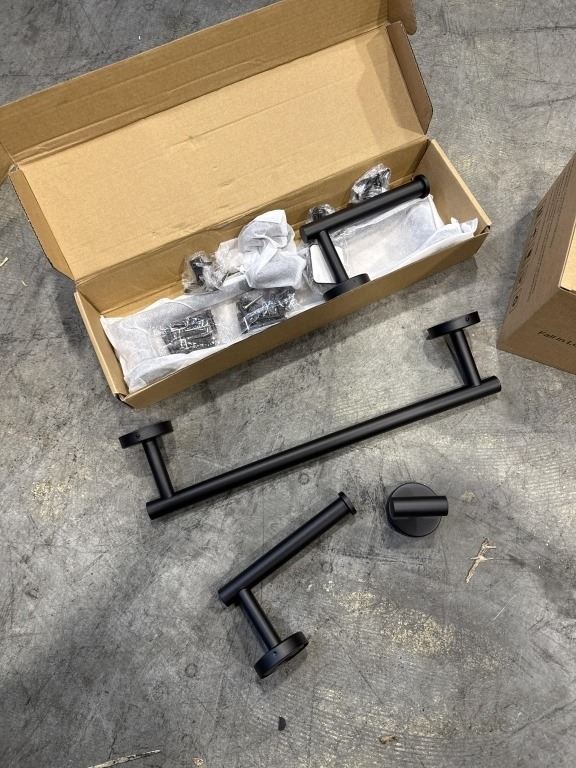 NEW 10PC BATHROOM TOWEL BAR AND TISSUE / HOOK SET BLACK, AND NEW UNIQUE RAIN SHOWER HEAD WITH FILTER CARTRIDGE