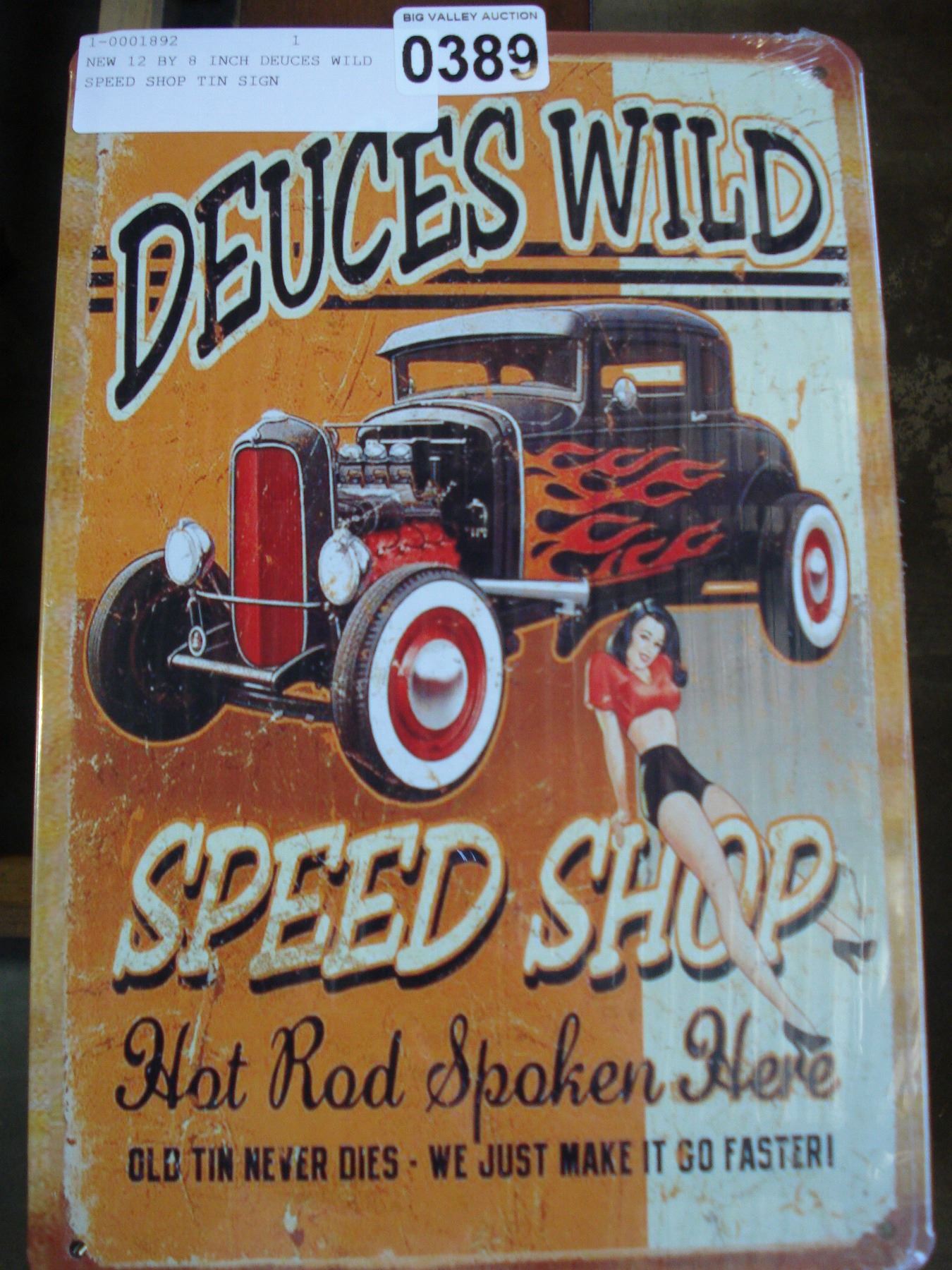 NEW 12 BY 8 INCH DEUCES WILD SPEED SHOP TIN SIGN