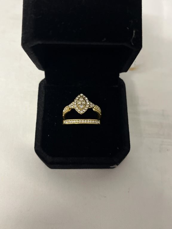 NEW 14K GOLD PLATE SIMULATED DIAMOND (CZ) HALO RING SET, SIZE 8
