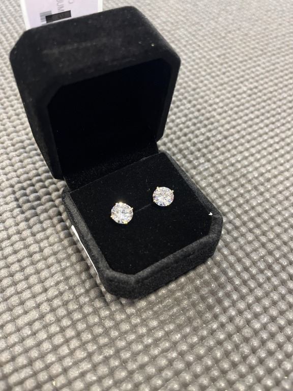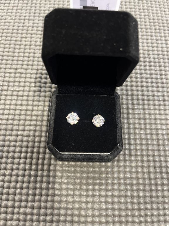 NEW 14K GOLD PLATED 2.0CT EACH SIMULATED DIAMOND (CZ) STUD EARRINGS