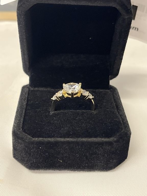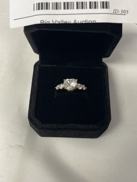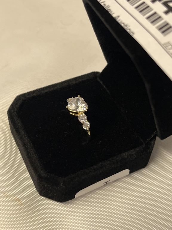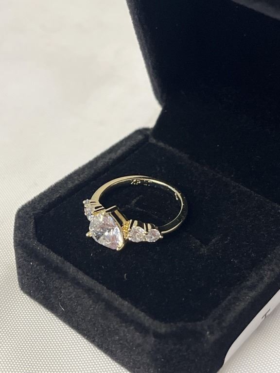 NEW 14K GOLD PLATED 2.0CT HEART CUT SIMULATED DIAMND (CZ) RING, SIZE 7