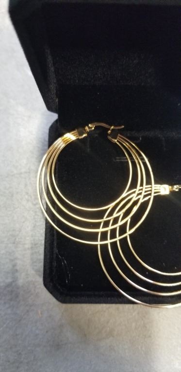 NEW 14K GOLD PLATED 50MM QUADRUPLE HOOP EARRINGS