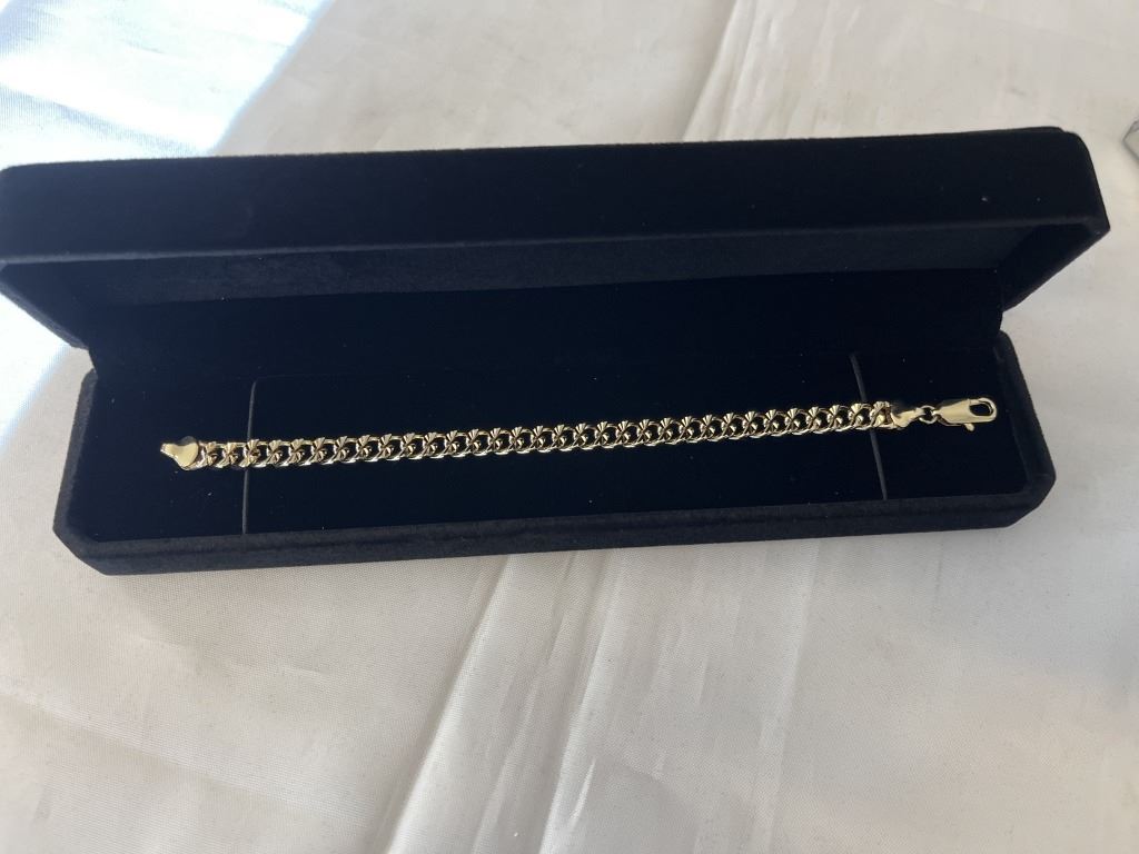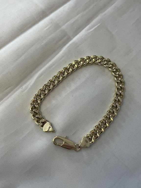 NEW 14K GOLD PLATED 7.5MM CUBAN LINK BRACELET, 8" LONG