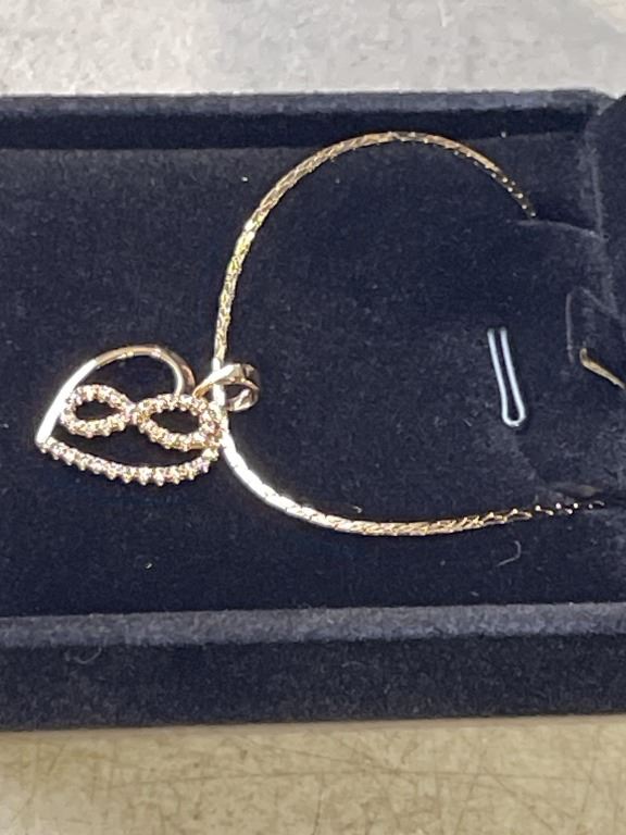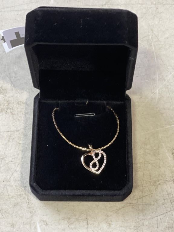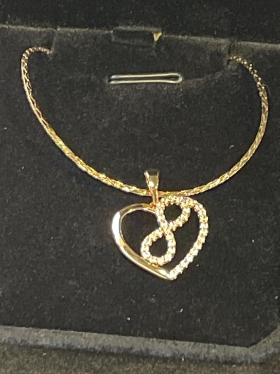 NEW 18K GOLD PLATED 20.0MM SIMULATED DIAMOND (CZ) INFINITY HEART NECKLACE - CHAIN 20" LONG