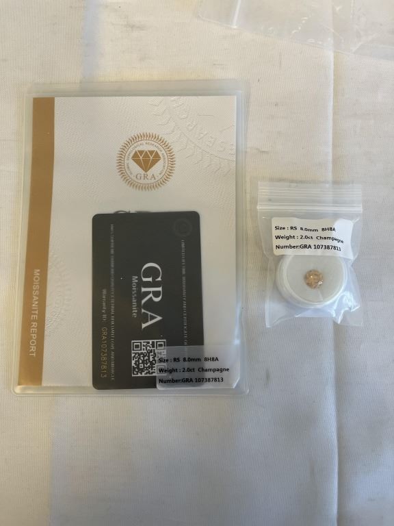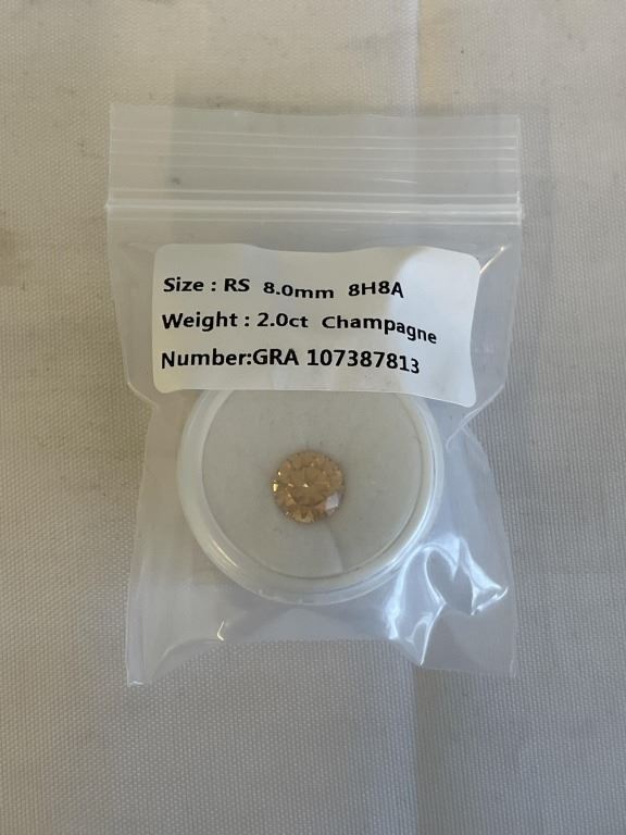 NEW 2.0CT CHAMPAGNE MOISSANITE STONE, ROUND BRILLIANT CUT, VVS1 TESTS POSITIVE W/ DIAMOND TESTER (MORE BRILLIANT THAN A DIAMOND)