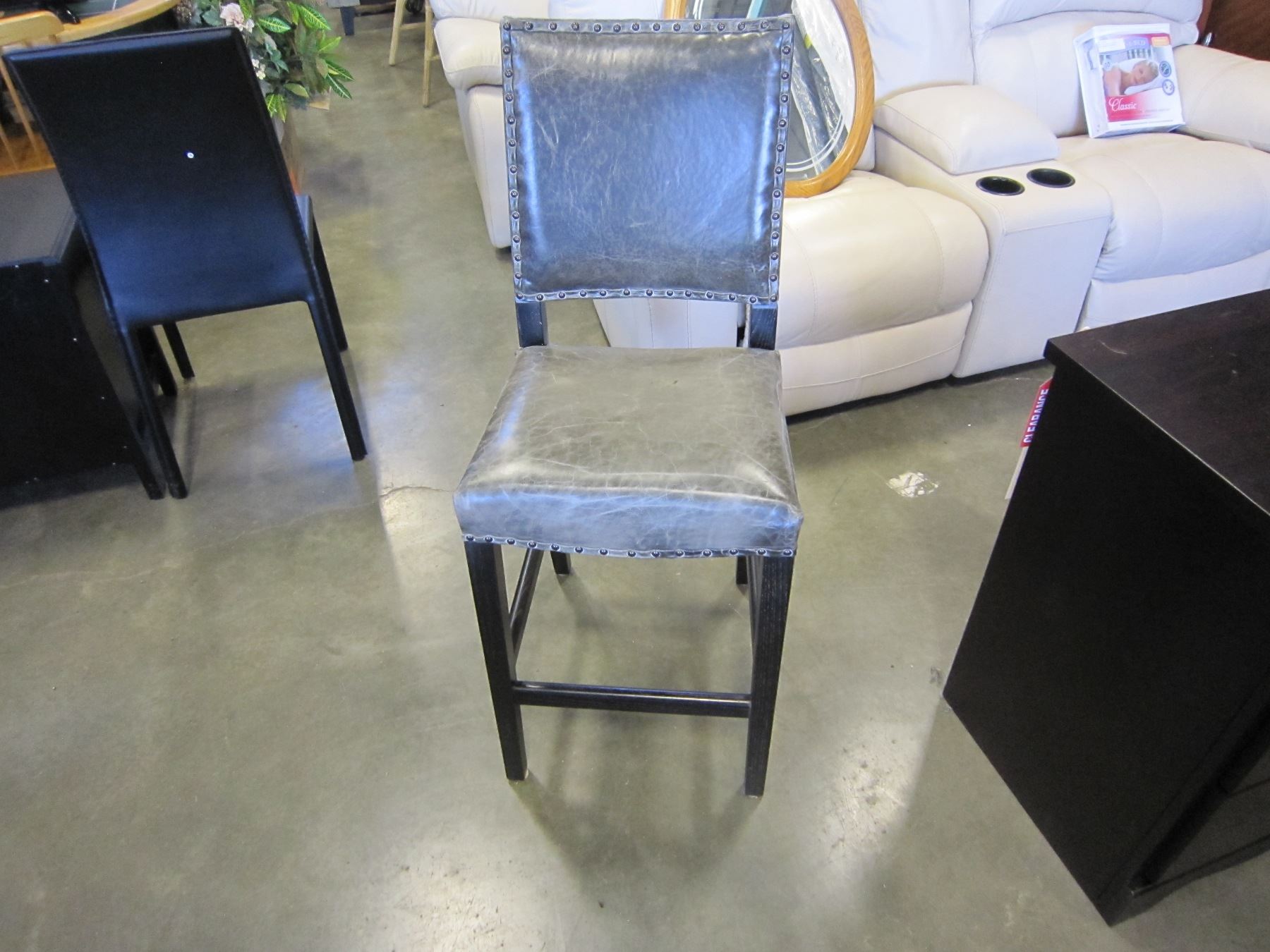 NEW 24" ANTIQUE GREY LEATHER COUNTER STOOL W/ NAILHEADS - WHOLESALE PRICE $250, CURRENT RETAIL $375