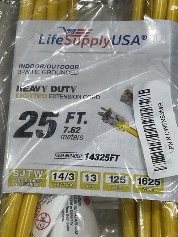 NEW 25FT HEAVY DUTY INDOOR OUTDOOR 3 WIRE EXTENSION CORD, YELLOW 14AWG
