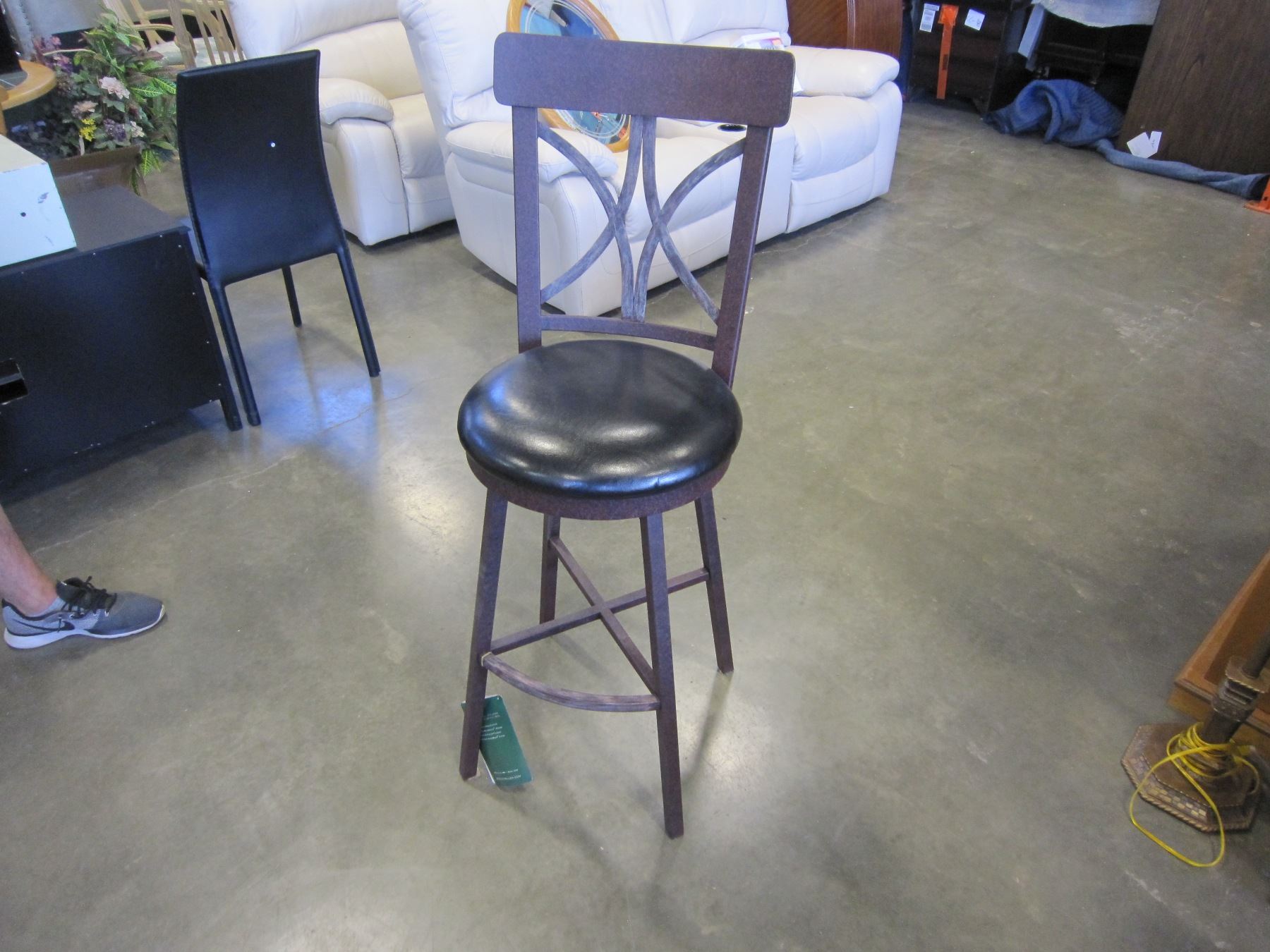 NEW 30" WESLEY ALLEN SOLID WROUGHT IRON SWIVEL BAR STOOL W/ BLACK LEATHER SEAT - WHOLESALE PRICE $295, CURRENT RETAIL $449