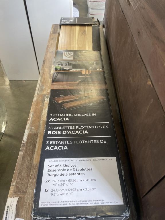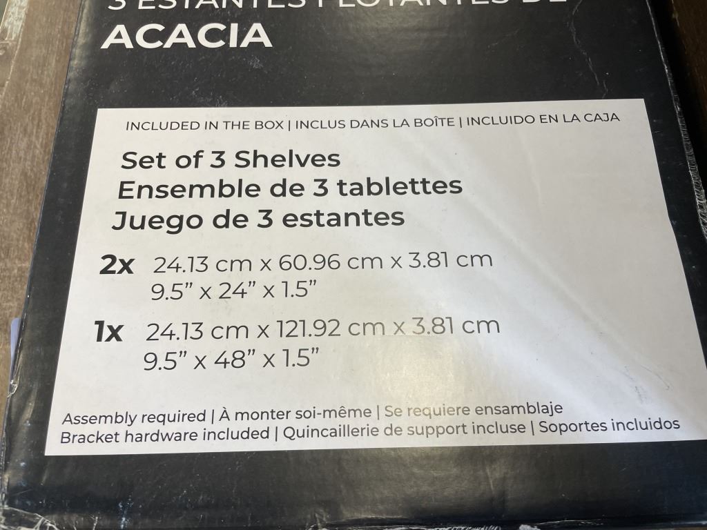 NEW 3PC FLOATING SHELF SET - ACACIA WOOD, 2 24" AND 1 48" SHELVES