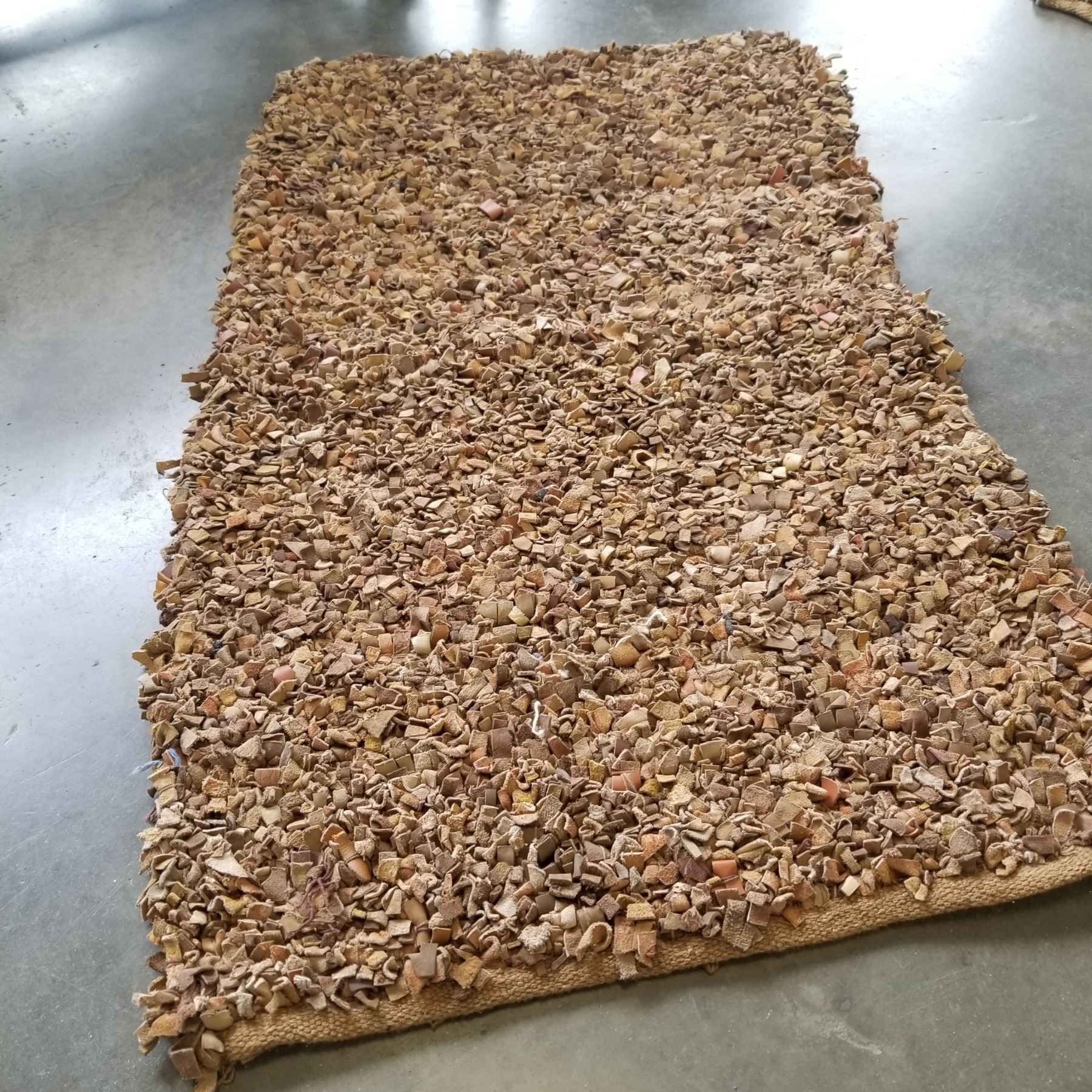 NEW 3X2 LIGHT BROWN LEATHER AREA CARPET HANDMADE FROM INDIA