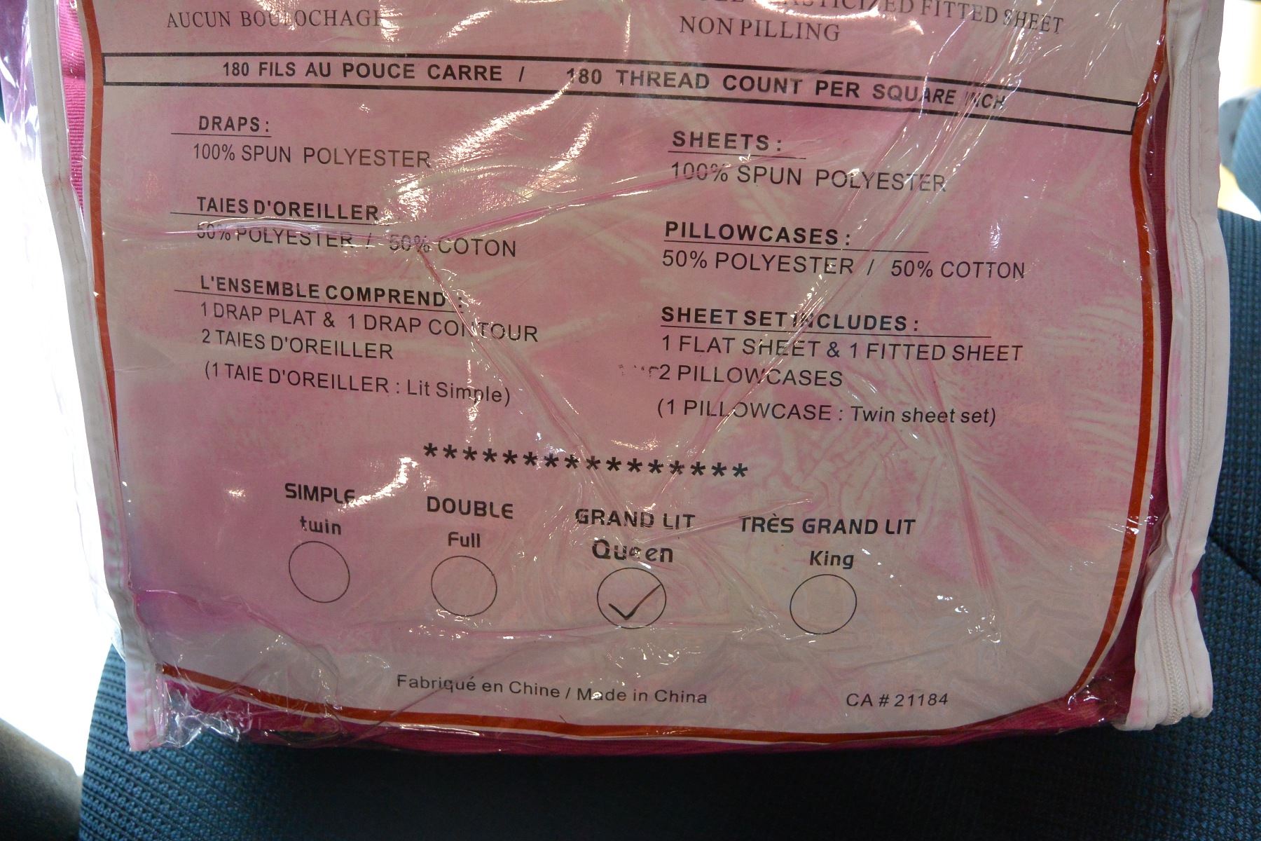 NEW 4 PIECE PINK QUEEN SIZE BED IN A BAG