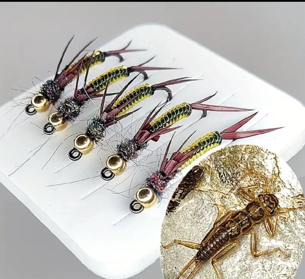 NEW 5PCS REALISTIC STONEFLY LARVAE FLY BAITS SLOW SINKING, MULTI-COLOR FLIES WITH LIFELIKE DESIGN