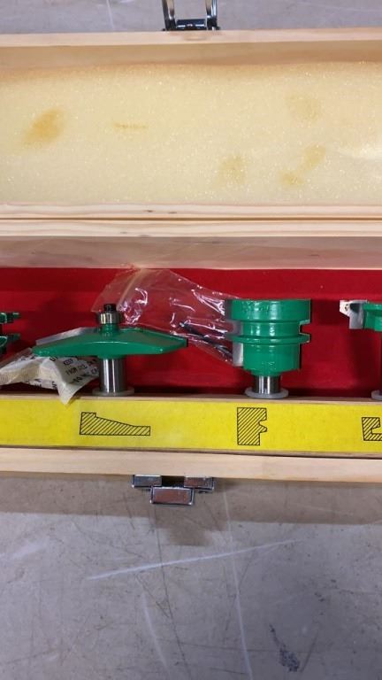 NEW 6 PIECE MOULDING ROUTER BIT SET - INCLUDES 3 PIECE RAISED PANEL DOOR, REVERSE GLUE JOINT, DRAWER LOCK AND 2 INCH CROWN