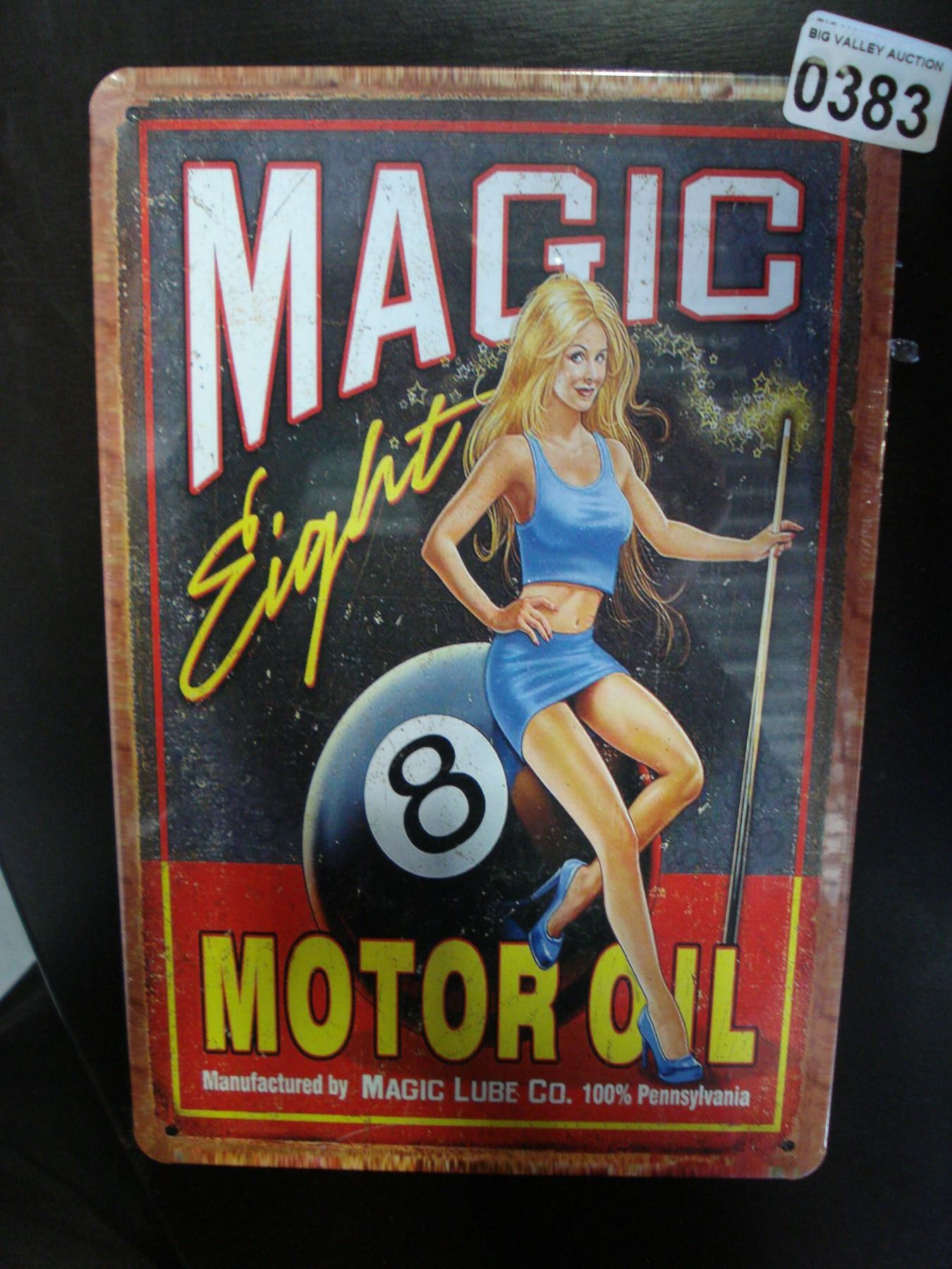 NEW 6 X 12 INCH MAGIC EIGHT MOTOR OIL TIN SIGN