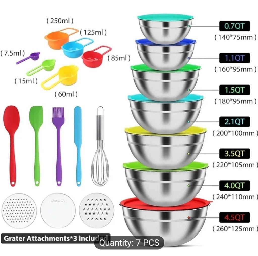 NEW 7-PIECE STAINLESS STEEL MIXING BOWL SET