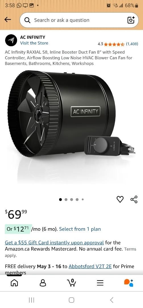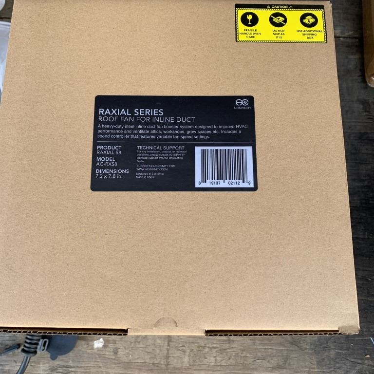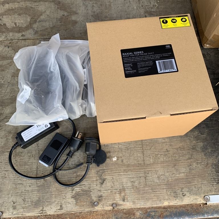 NEW AC INFINITI RAXIAL S8 INLINE BOOSTER DUCT FAN 8 IN WITH SPEED CONTROLLER AND 3 NEW 120V DIMMER WITH REMOTE RETAIL $210