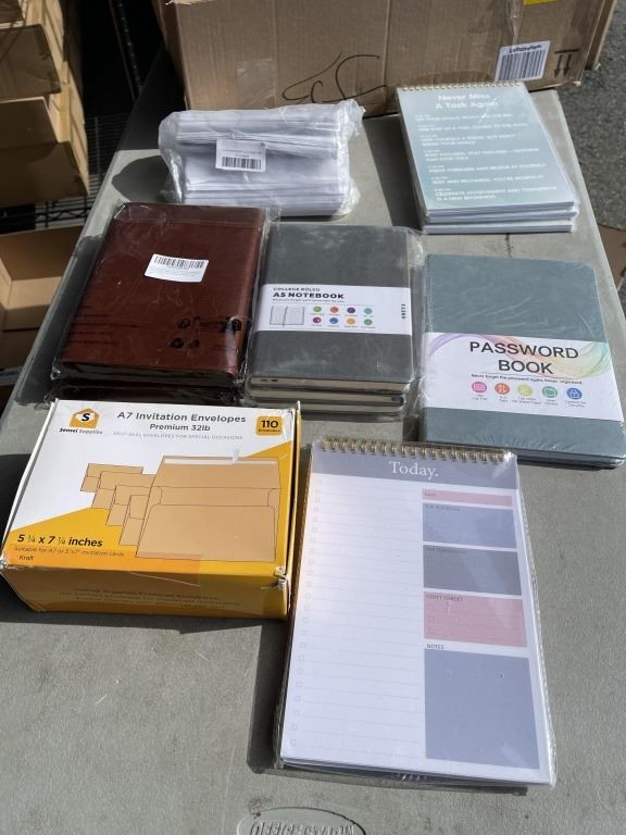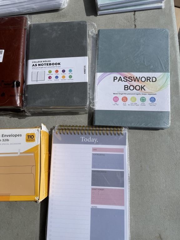 NEW AMAZON OVERSTOCK INCLUDING NOTEBOOKS AND SELFSELING ENVOLPES