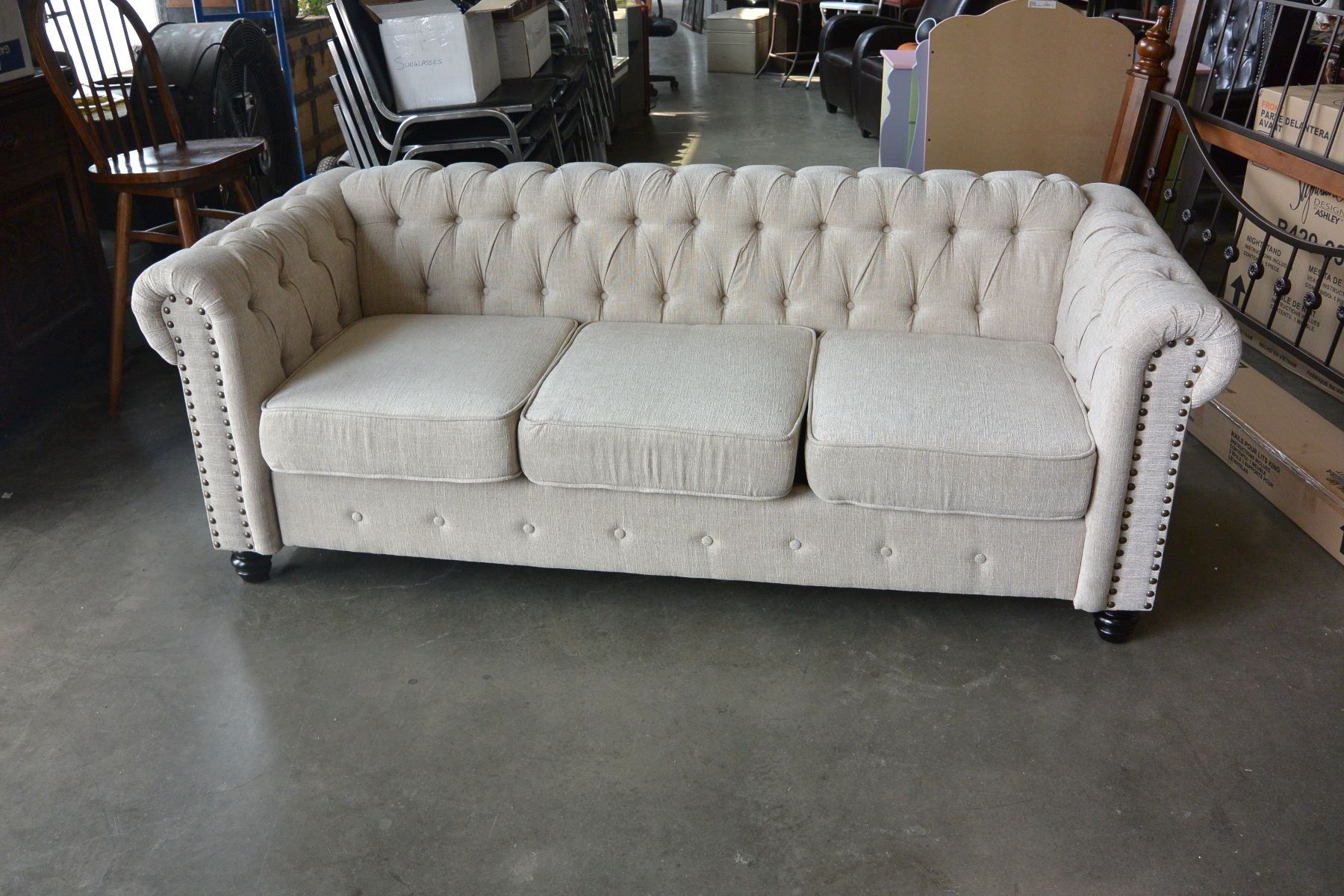 NEW ASHLEY BEIGE TUFTED MODERN SOFA, RETAIL $1499