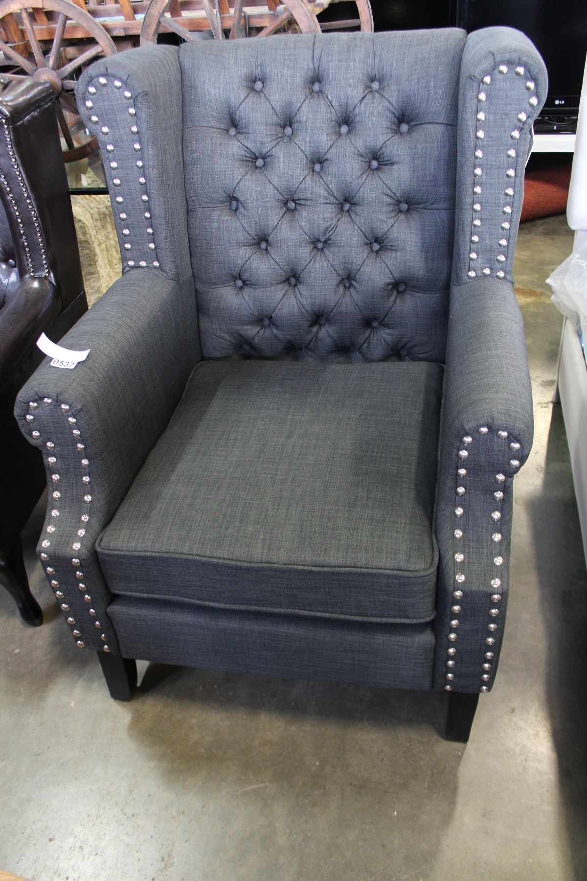 NEW ASHLEY CHARCOAL FABRIC TUFTED ACCENT CHAIR - RETAIL $1,399