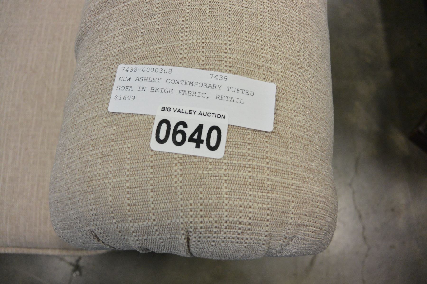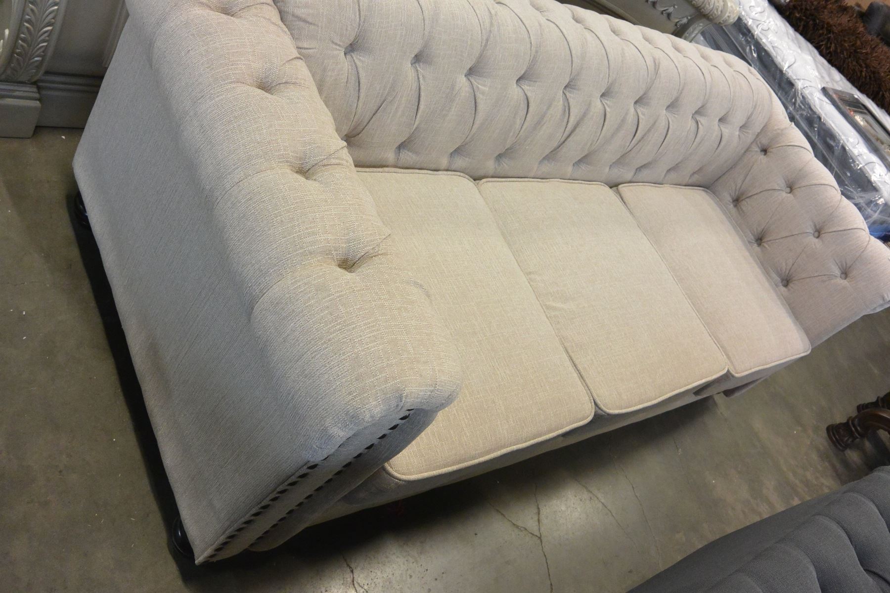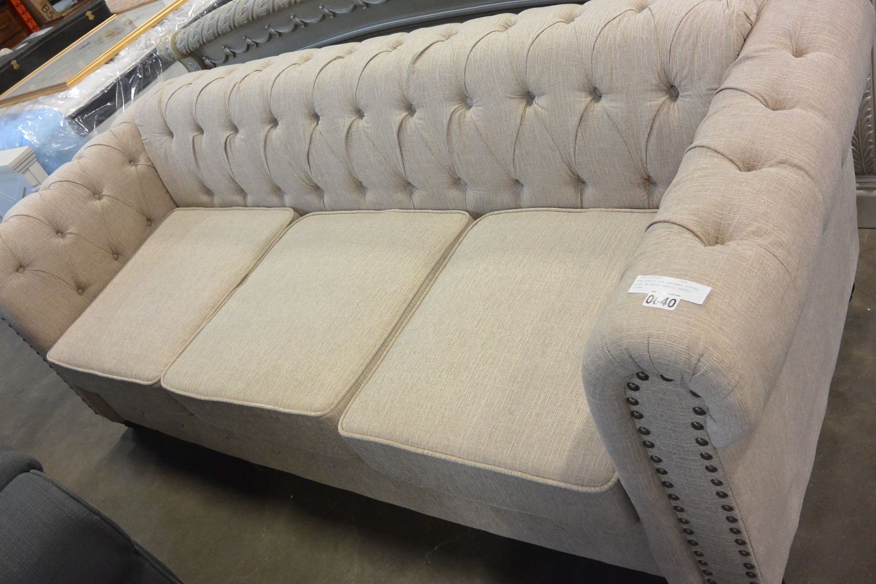 NEW ASHLEY CONTEMPORARY TUFTED SOFA IN BEIGE FABRIC, RETAIL $1699