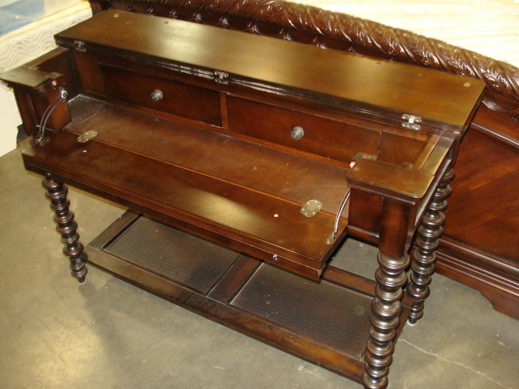 NEW ASHLEY DARK FINISH FLIP OPEN CONSOLE TABLE RETAIL $1299