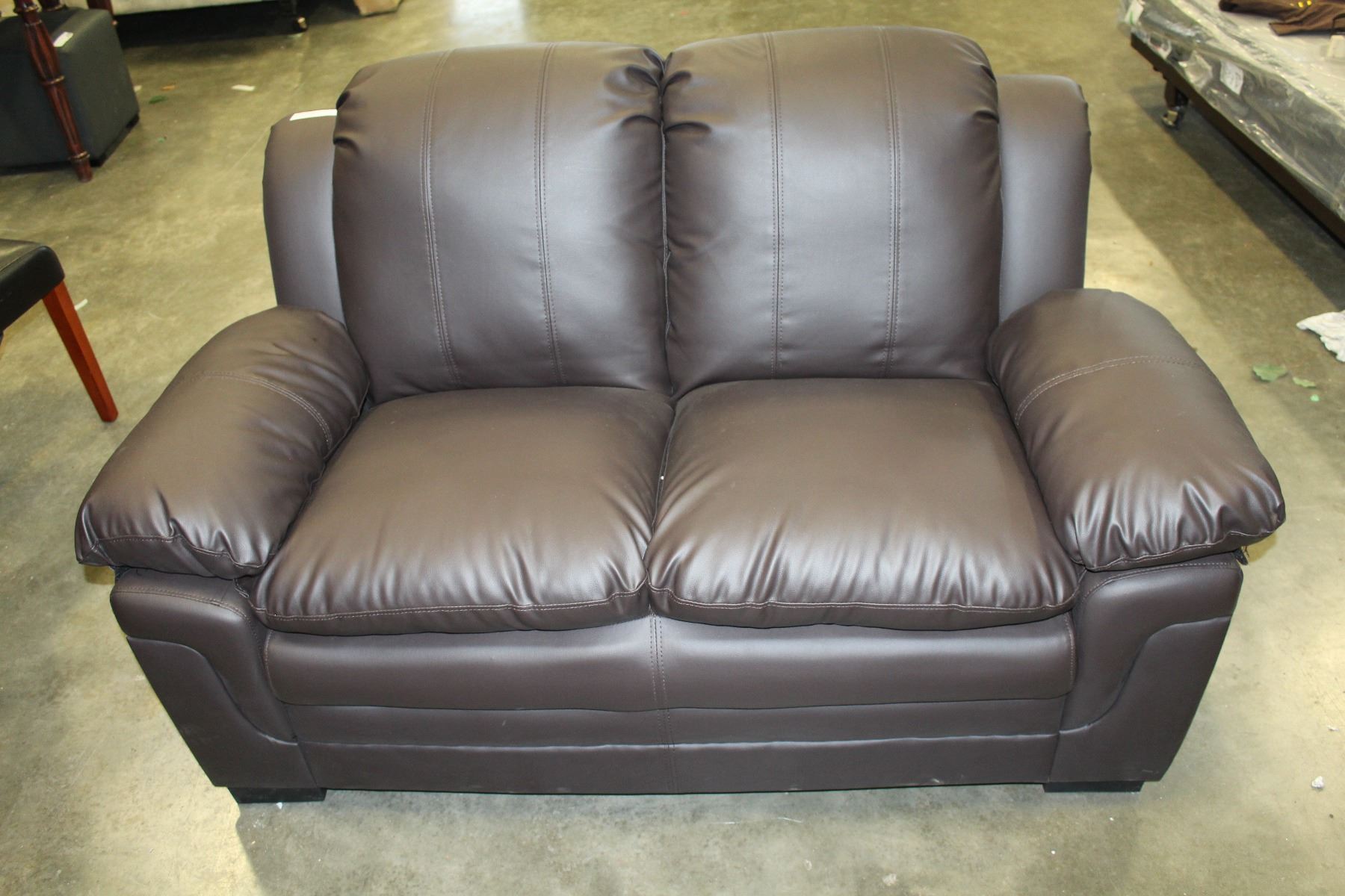 NEW ASHLEY DESIGN BROWN LEATHER CONTEMPORARY COMFORTABLE SEATING LOVESEAT, RETAIL $699