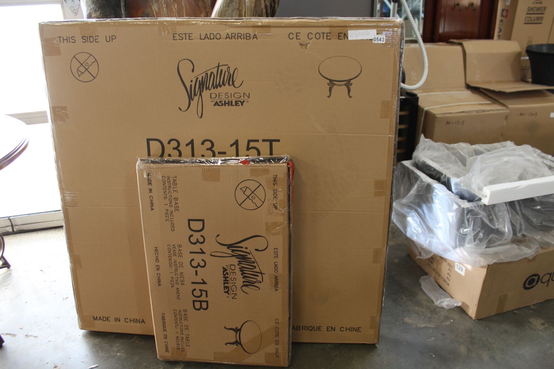 NEW ASHLEY FURNITURE ROUND DINING TABLE W/ METAL BASE - RETAIL $799