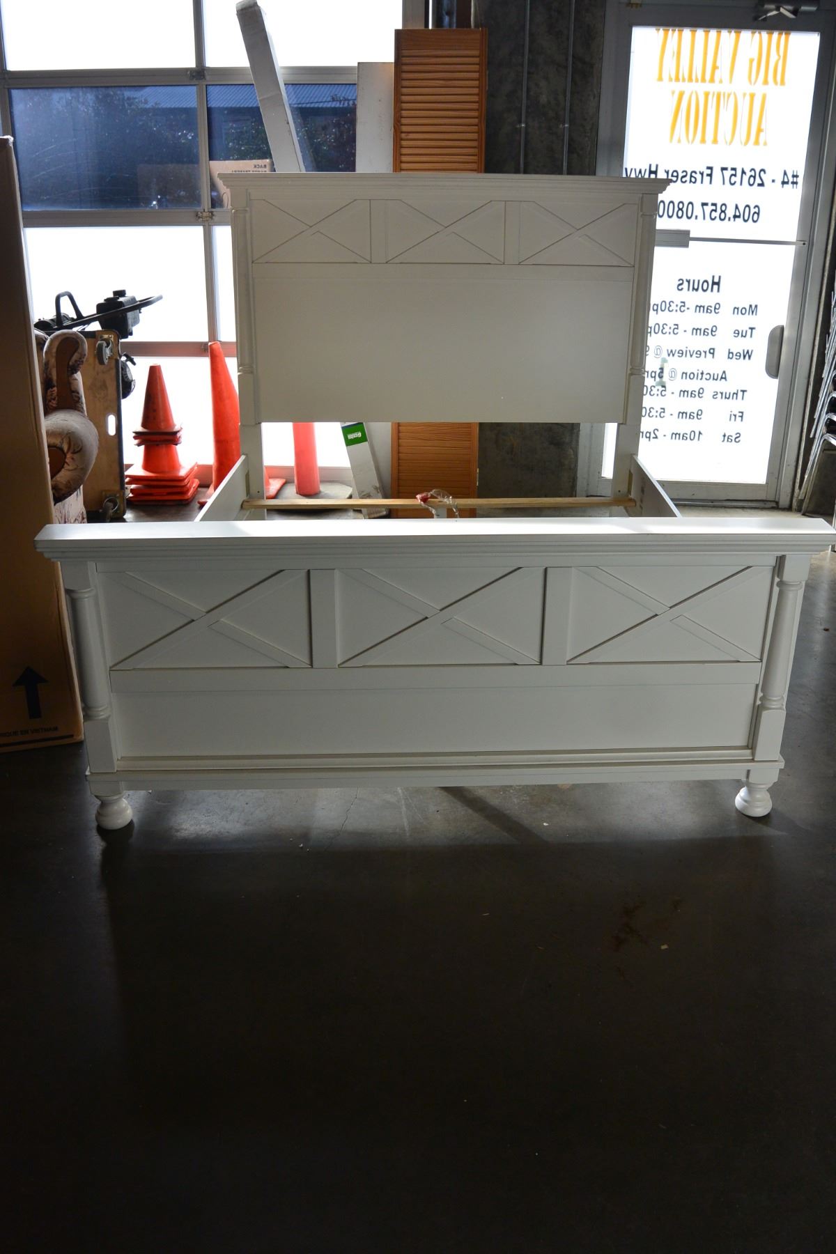 NEW ASHLEY FURNITURE WHITE QUEENSIZE CONTEMPORARY PANEL BEDFRAME RETAIL $1499