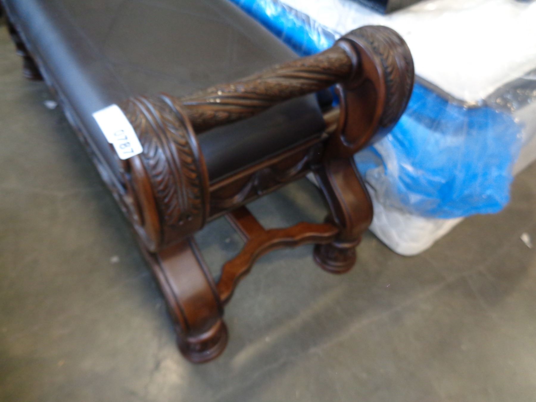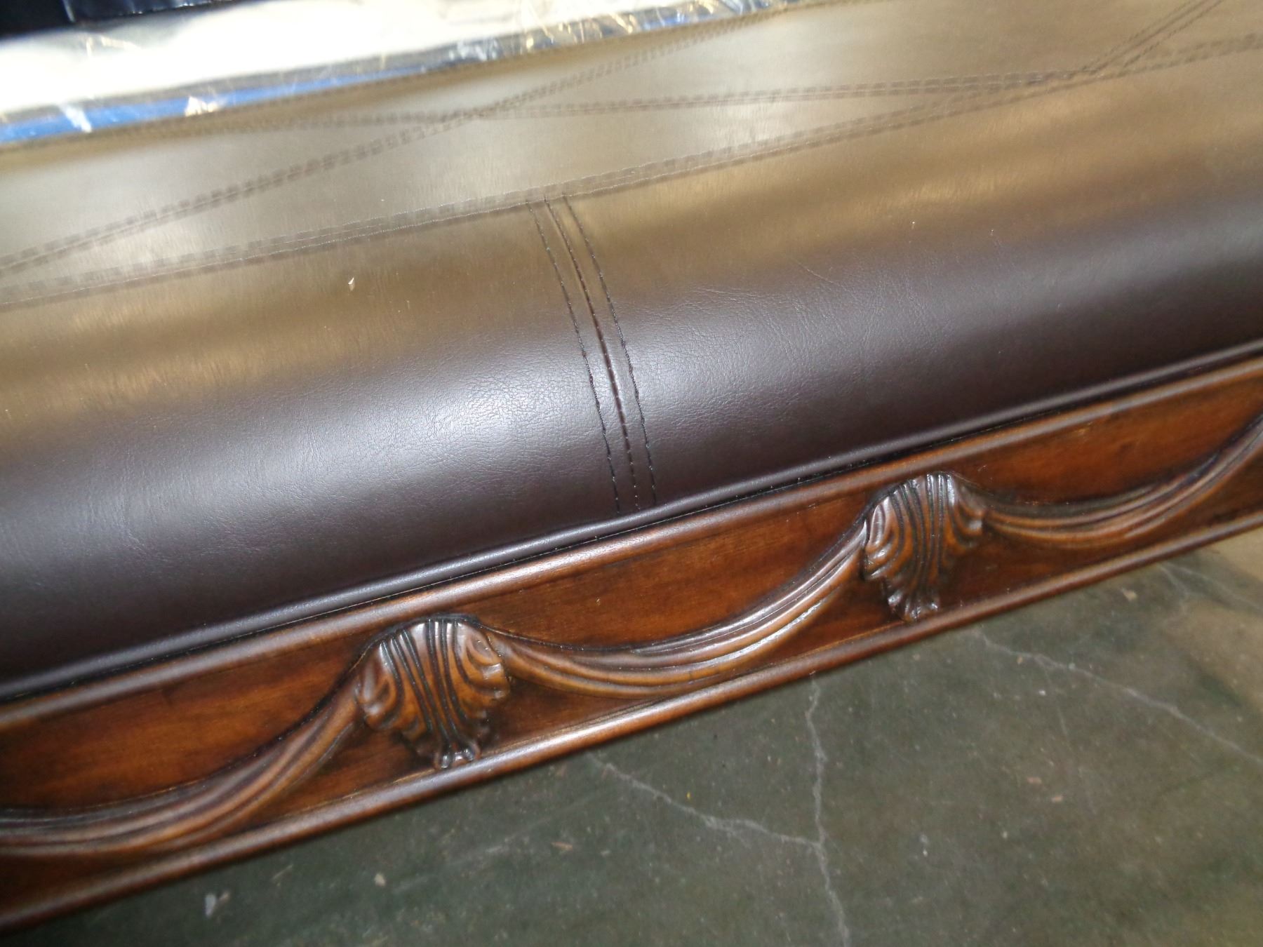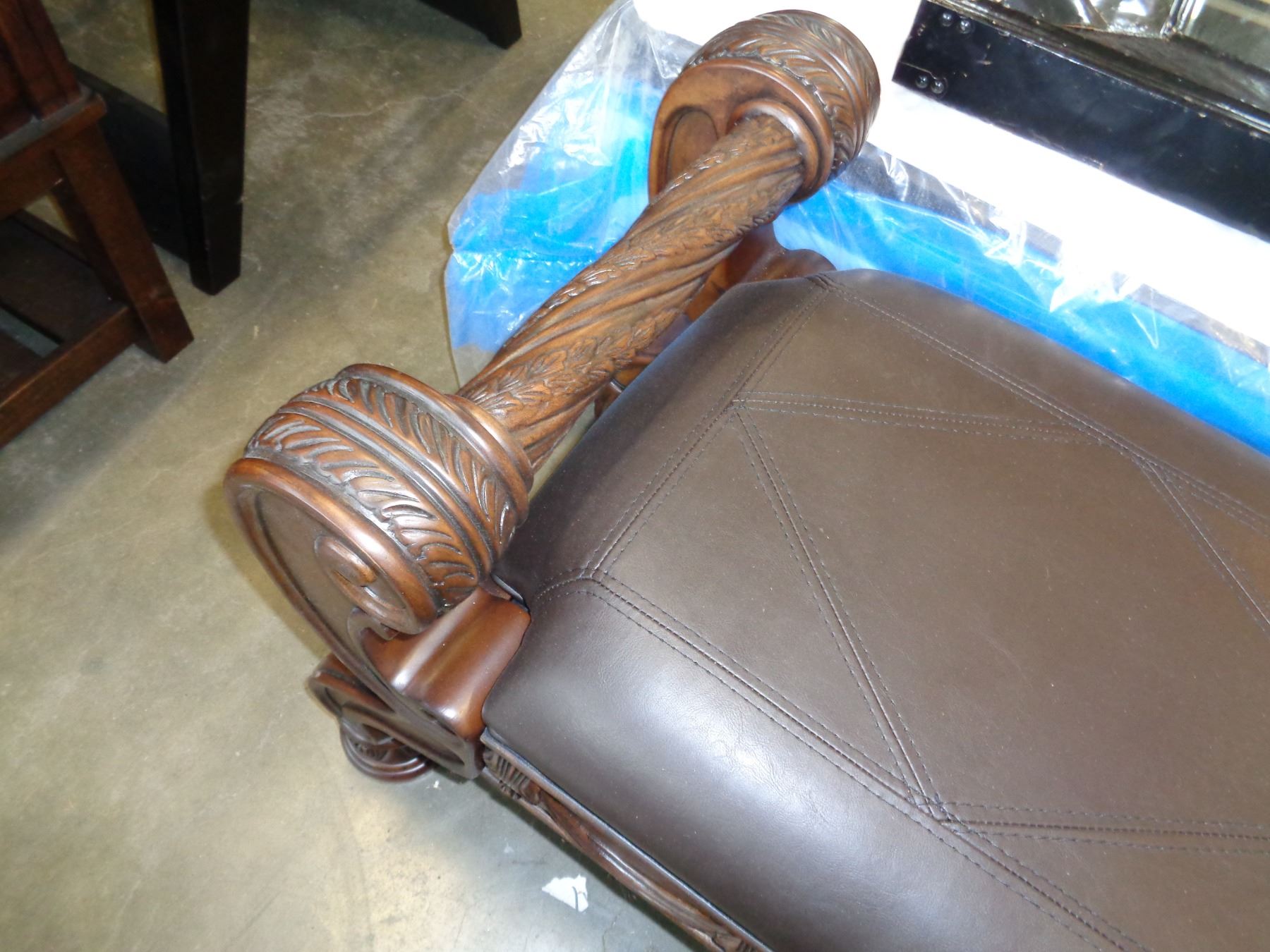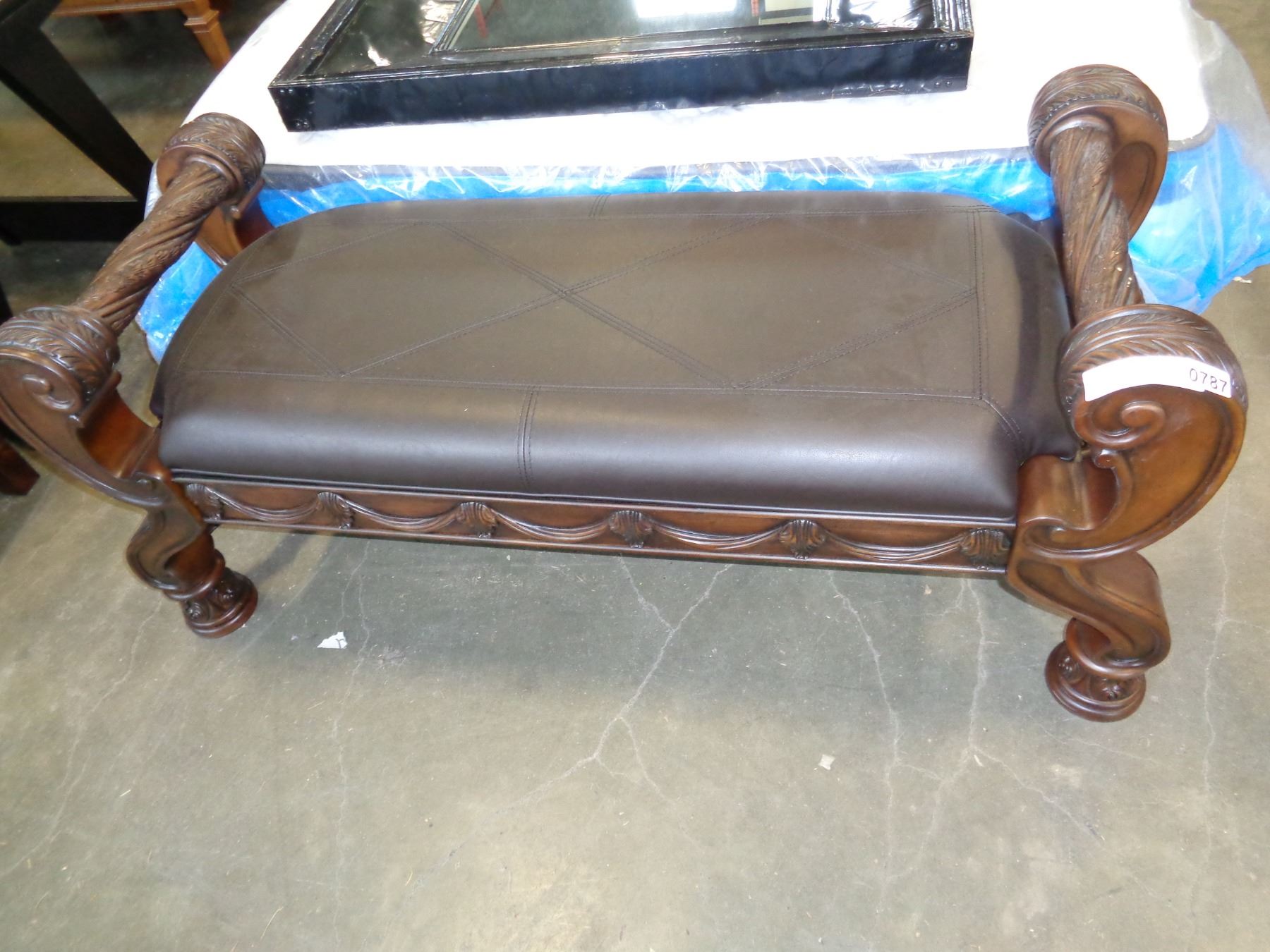 NEW ASHLEY HIGHLY CARVED AND BROWN LEATHER BENCH - RETAIL $1198
