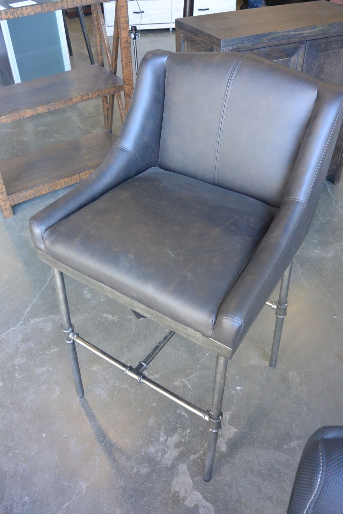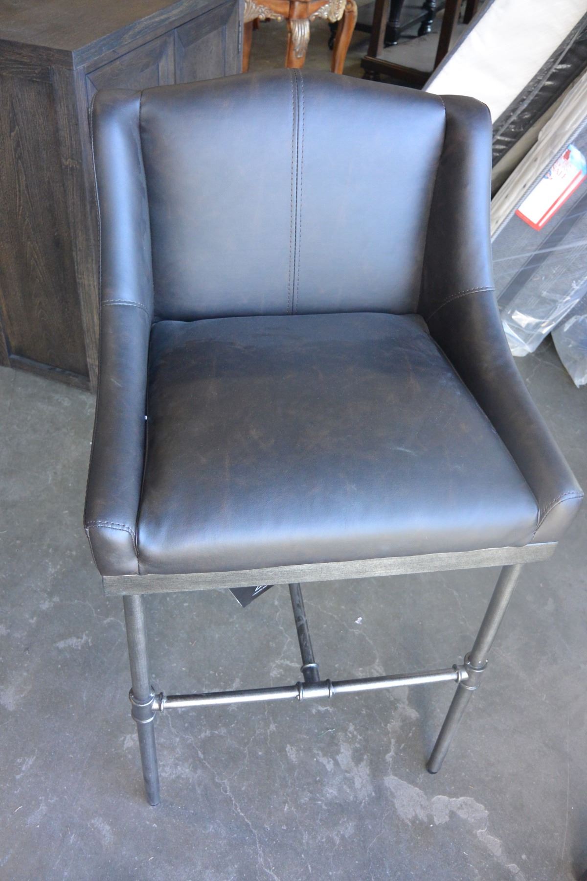 NEW ASHLEY INDUSTRIAL BASE WITH DARK LEATHER BAR STOOL RETAIL $362