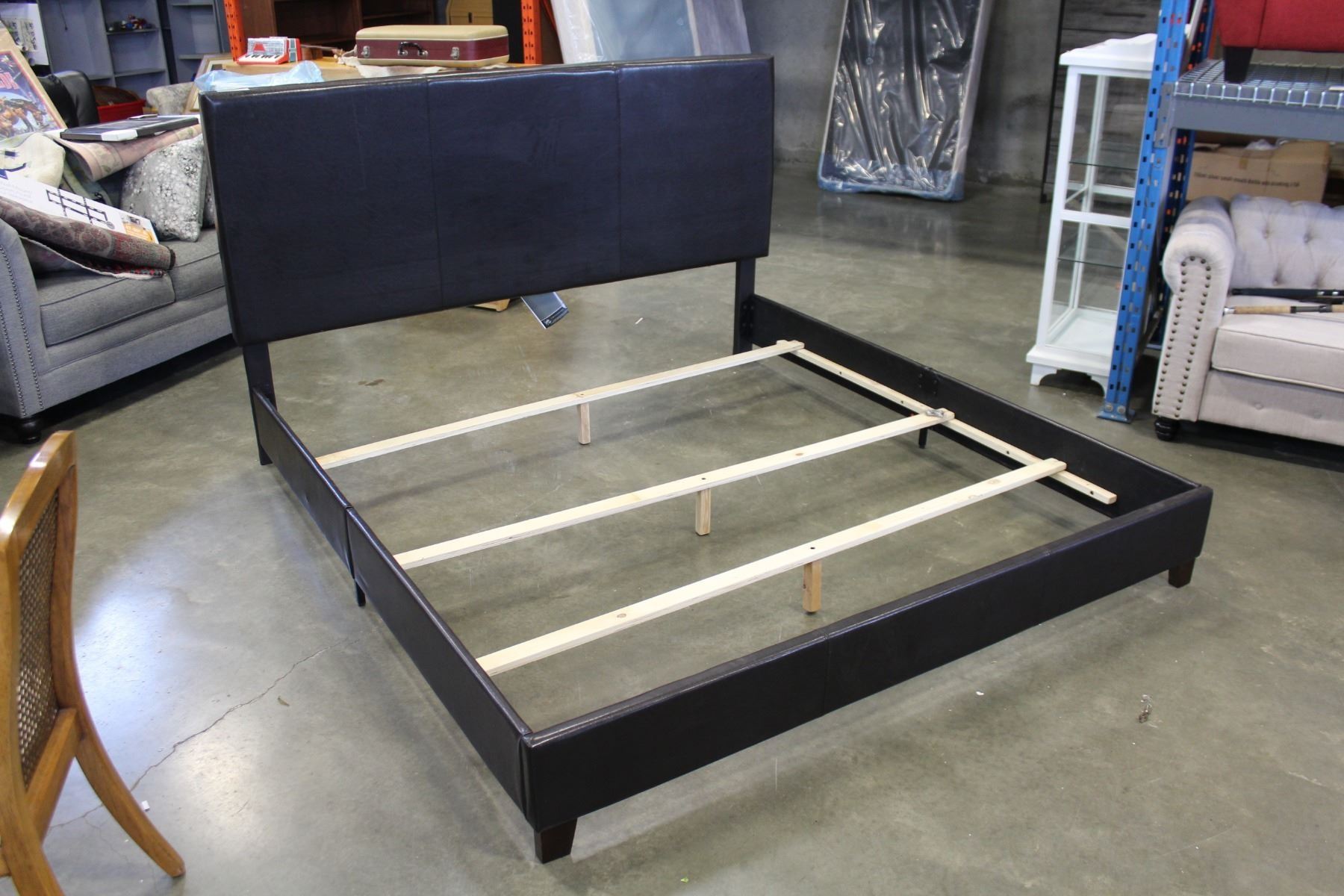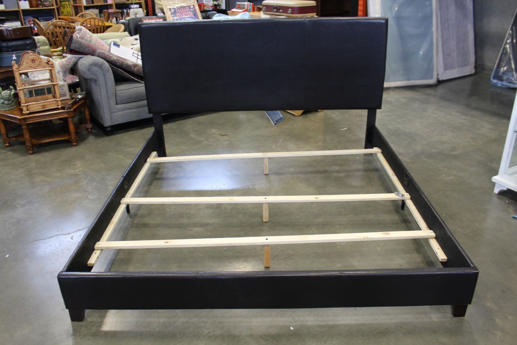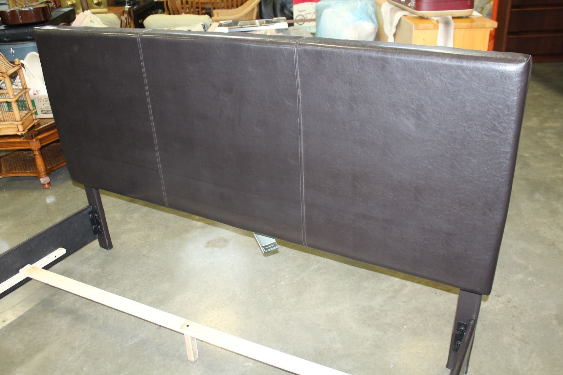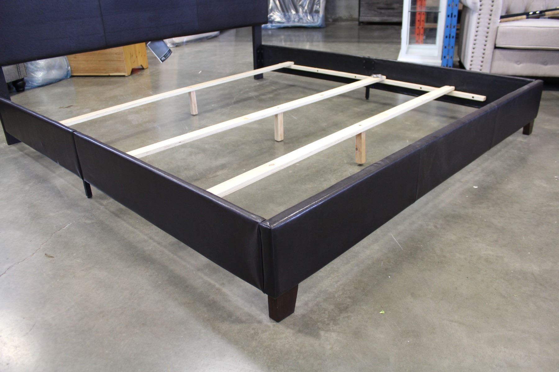 NEW ASHLEY KINGSIZE BROWN LEATHER PANEL PLATFORM BEDFRAME RETAIL $1099