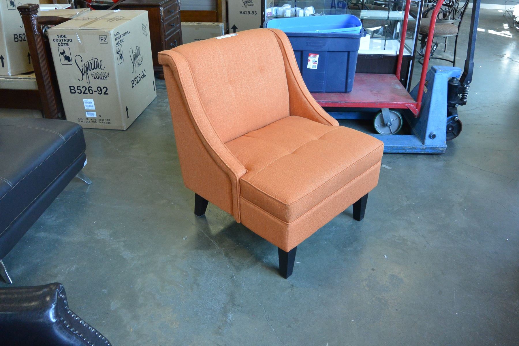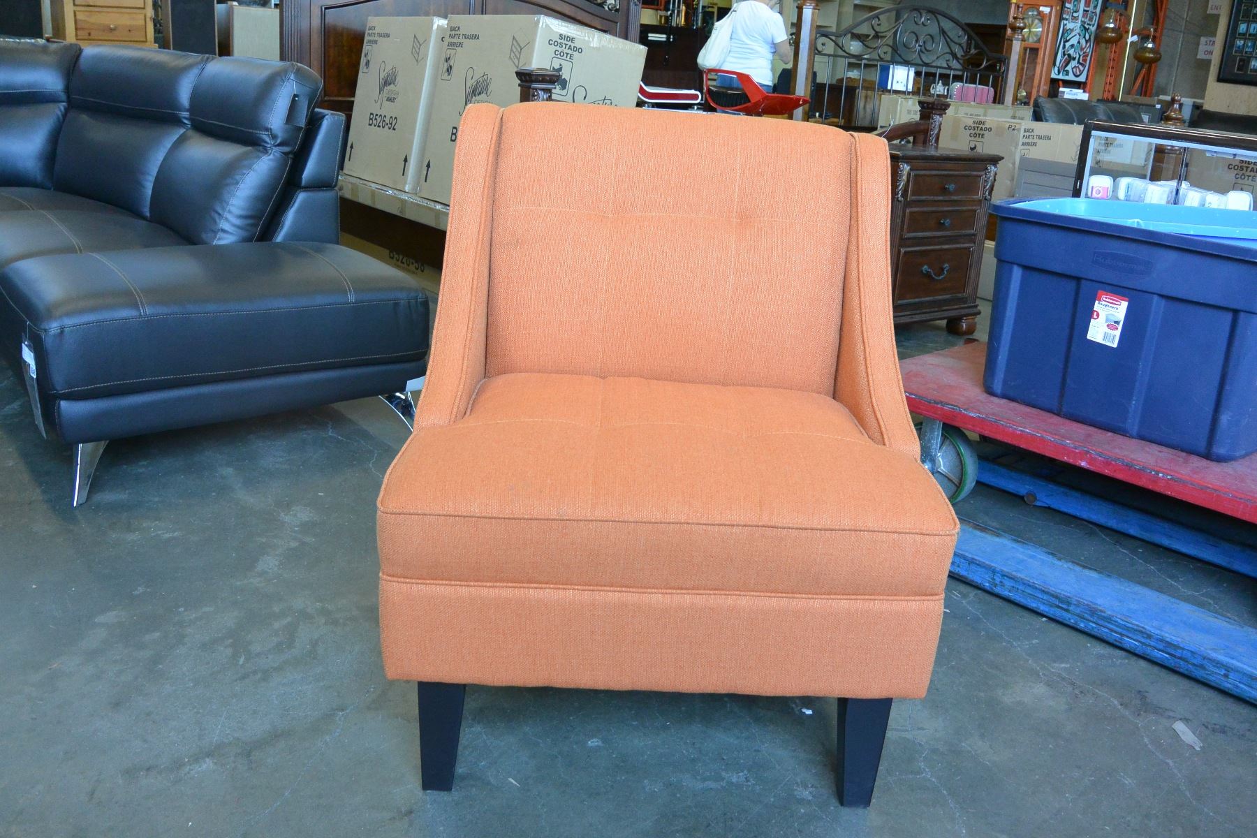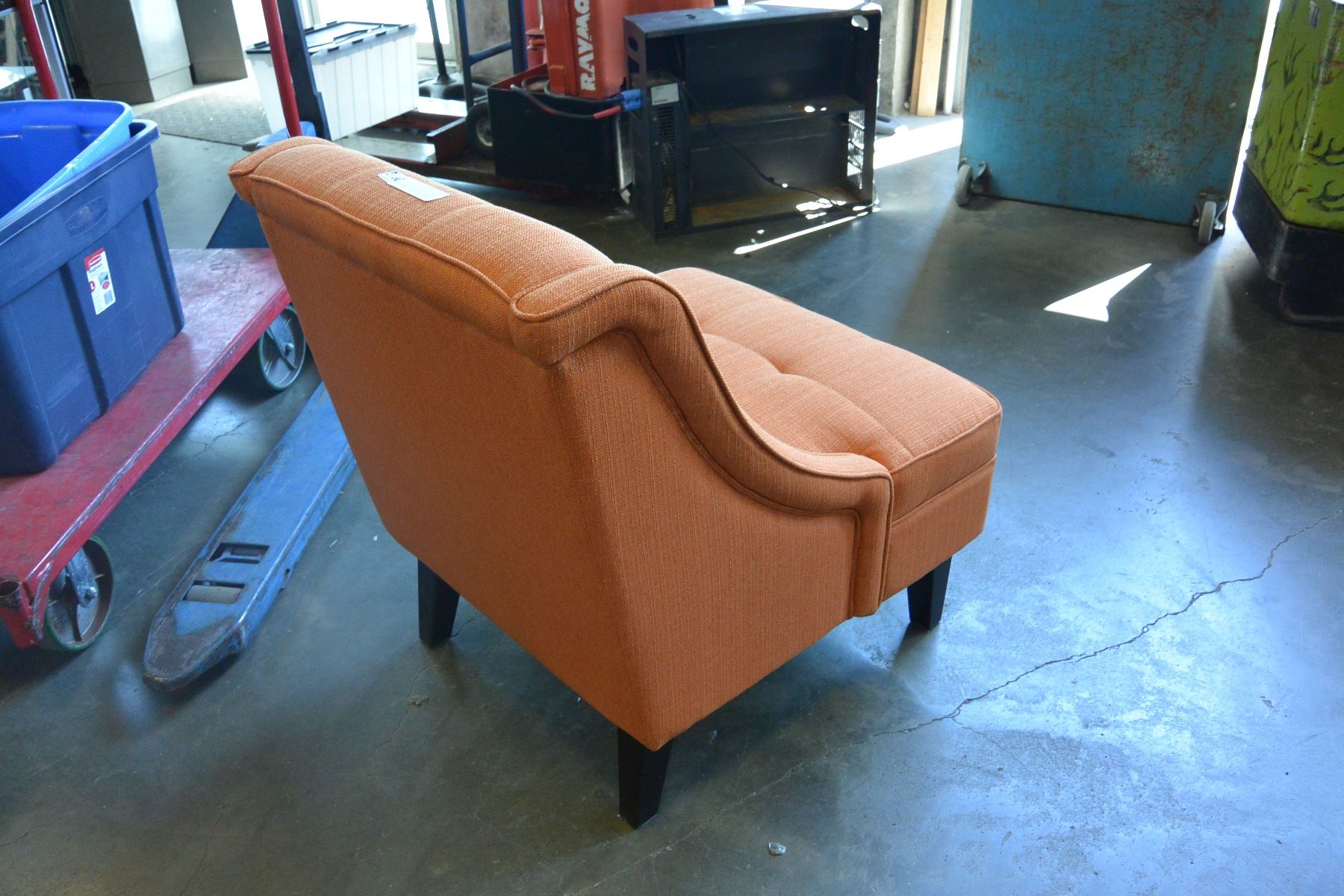 NEW ASHLEY MID CENTURY MODERN DESIGN TUFTED ORANGE ACCENT CHAIR, RETAIL $799