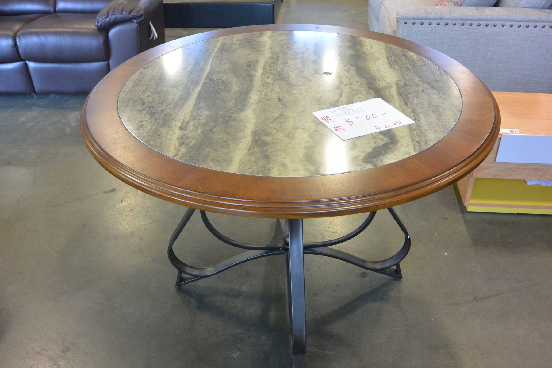 NEW ASHLEY ROUND DINING TABLE WITH DECORATIVE METAL BASE RETAIL $899