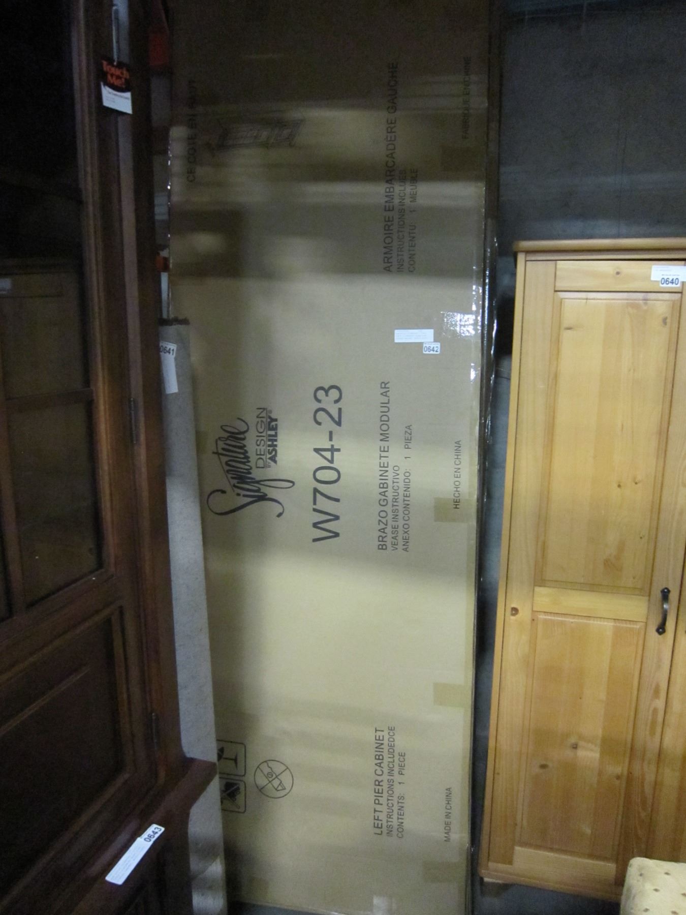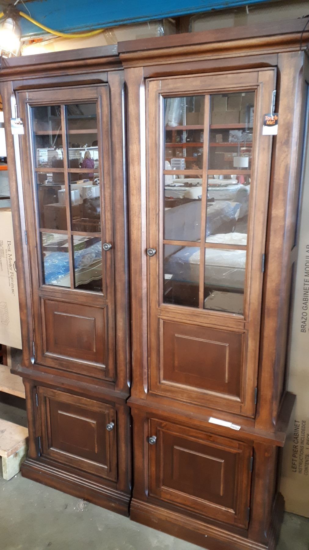NEW ASHLEY SIGNATURE 2 PIECE TOUCH ILLUMINATED GLASS PIER DISPLAY CABINET, RETAIL $4820