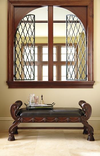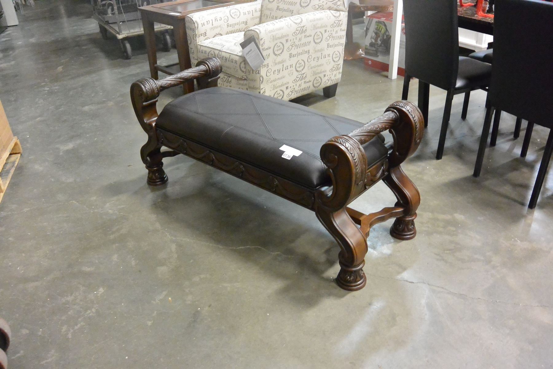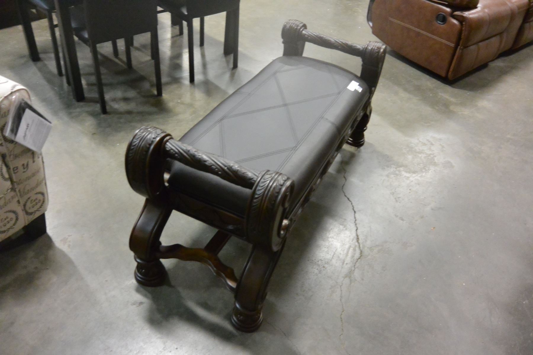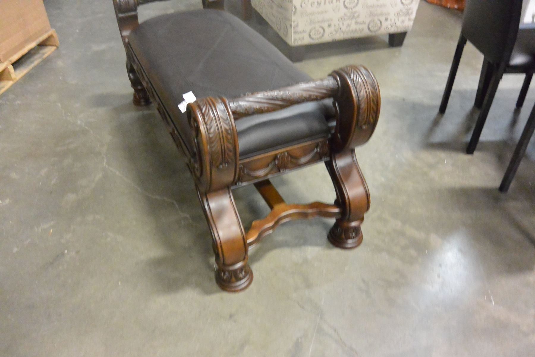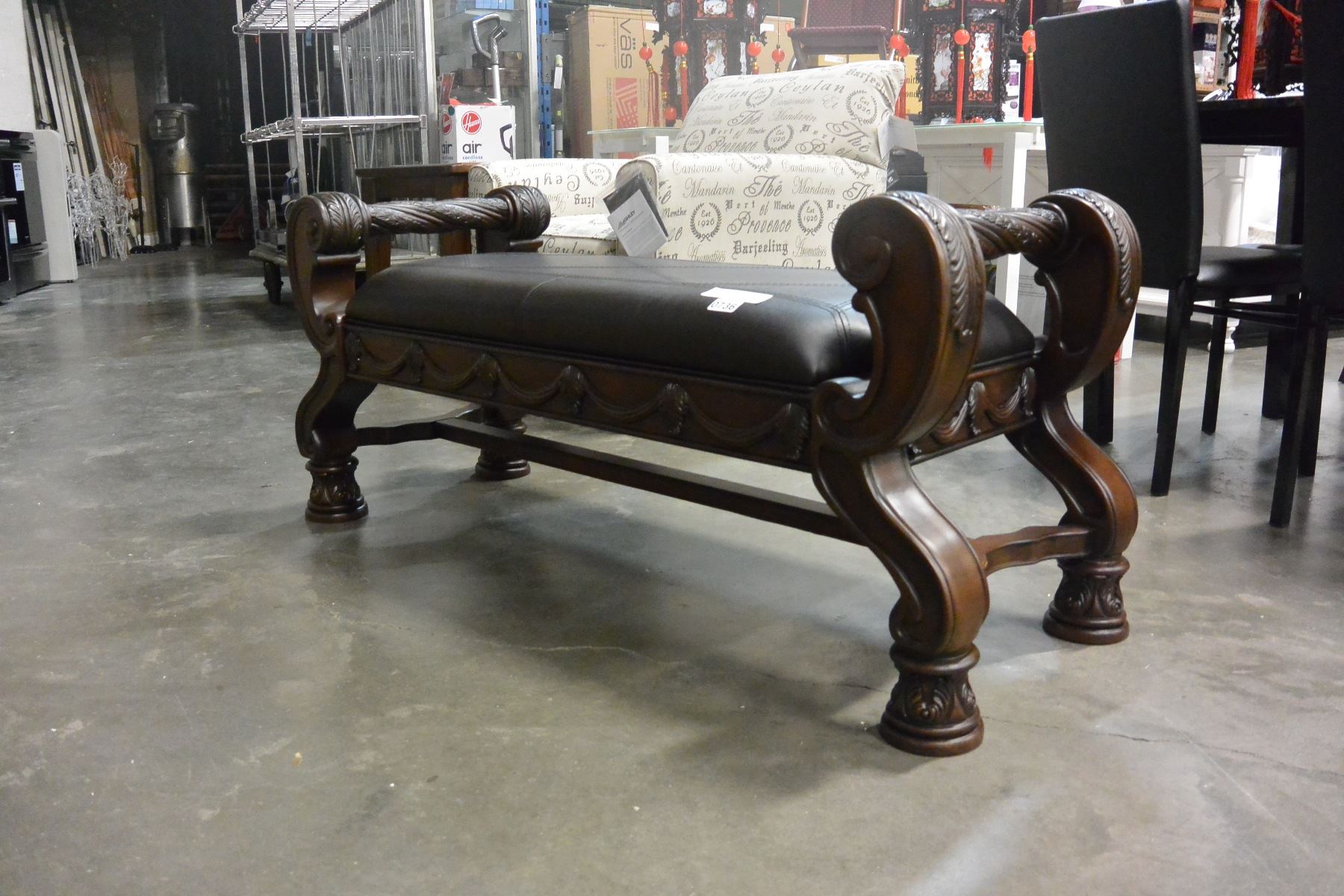 NEW ASHLEY SIGNATURE CARVED CONTEMPORARY LEATHER SEAT BENCH RETAIL $1399